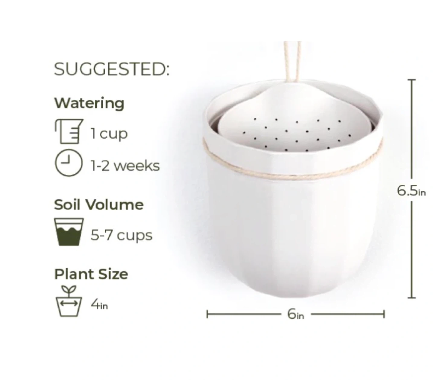 White Hanging Planter with Rope