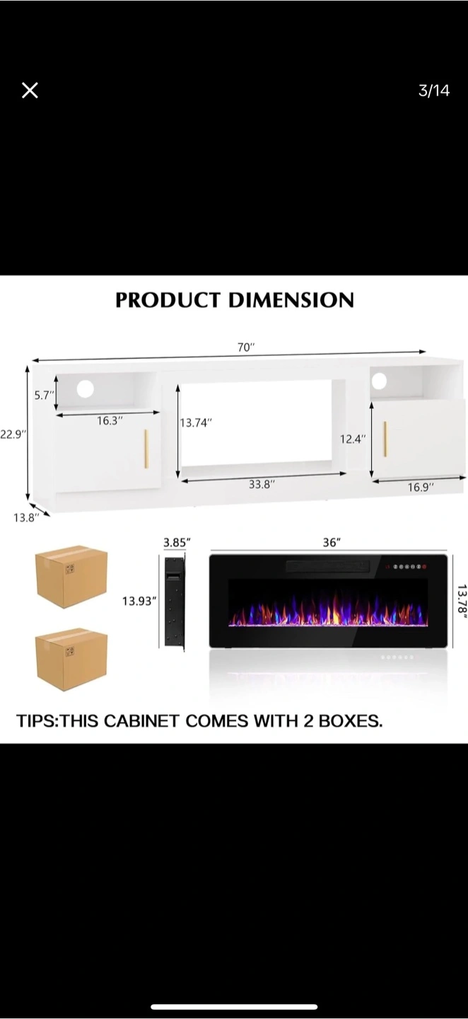 - Fireplace: 36" length, 13.78" height