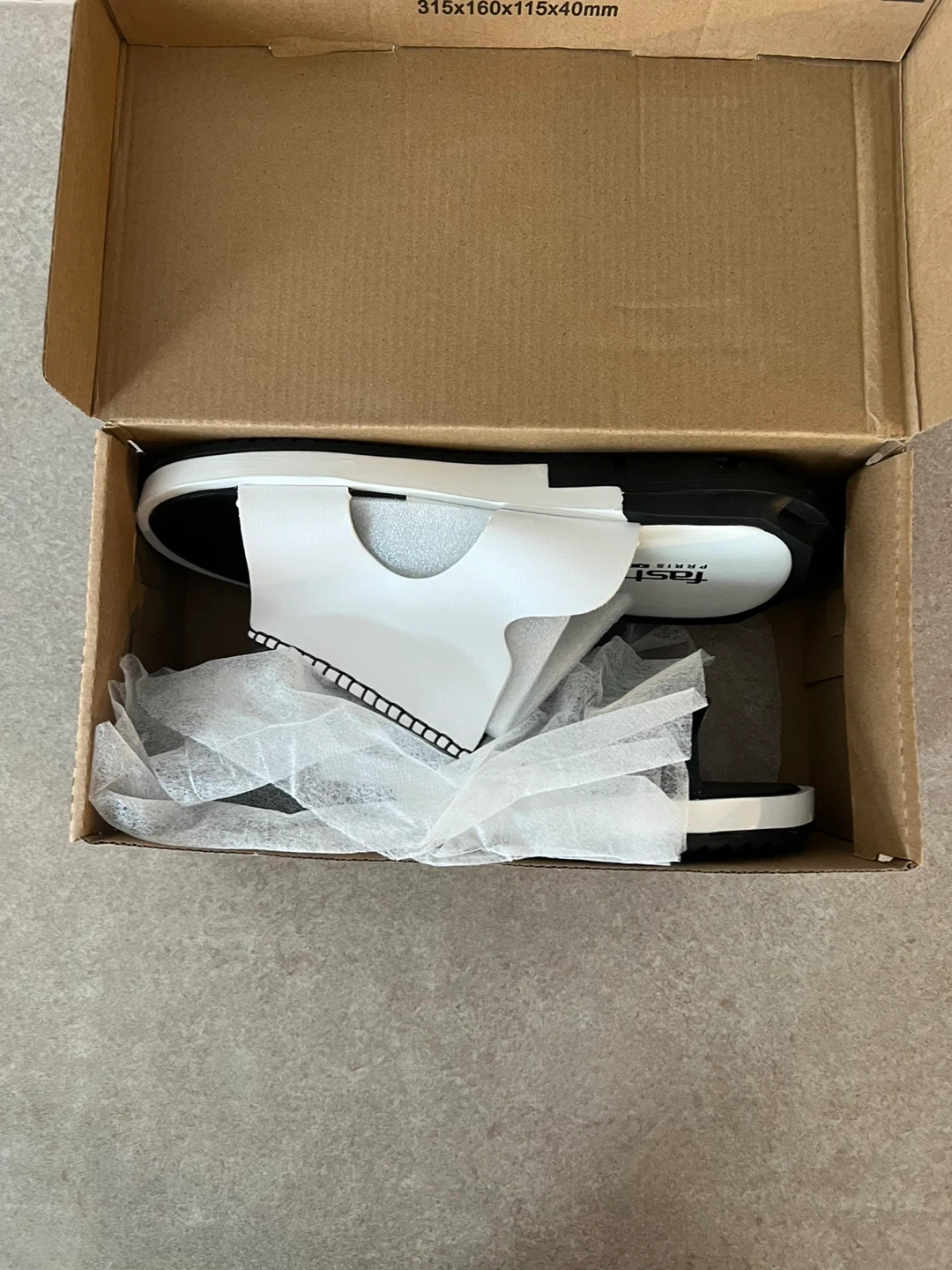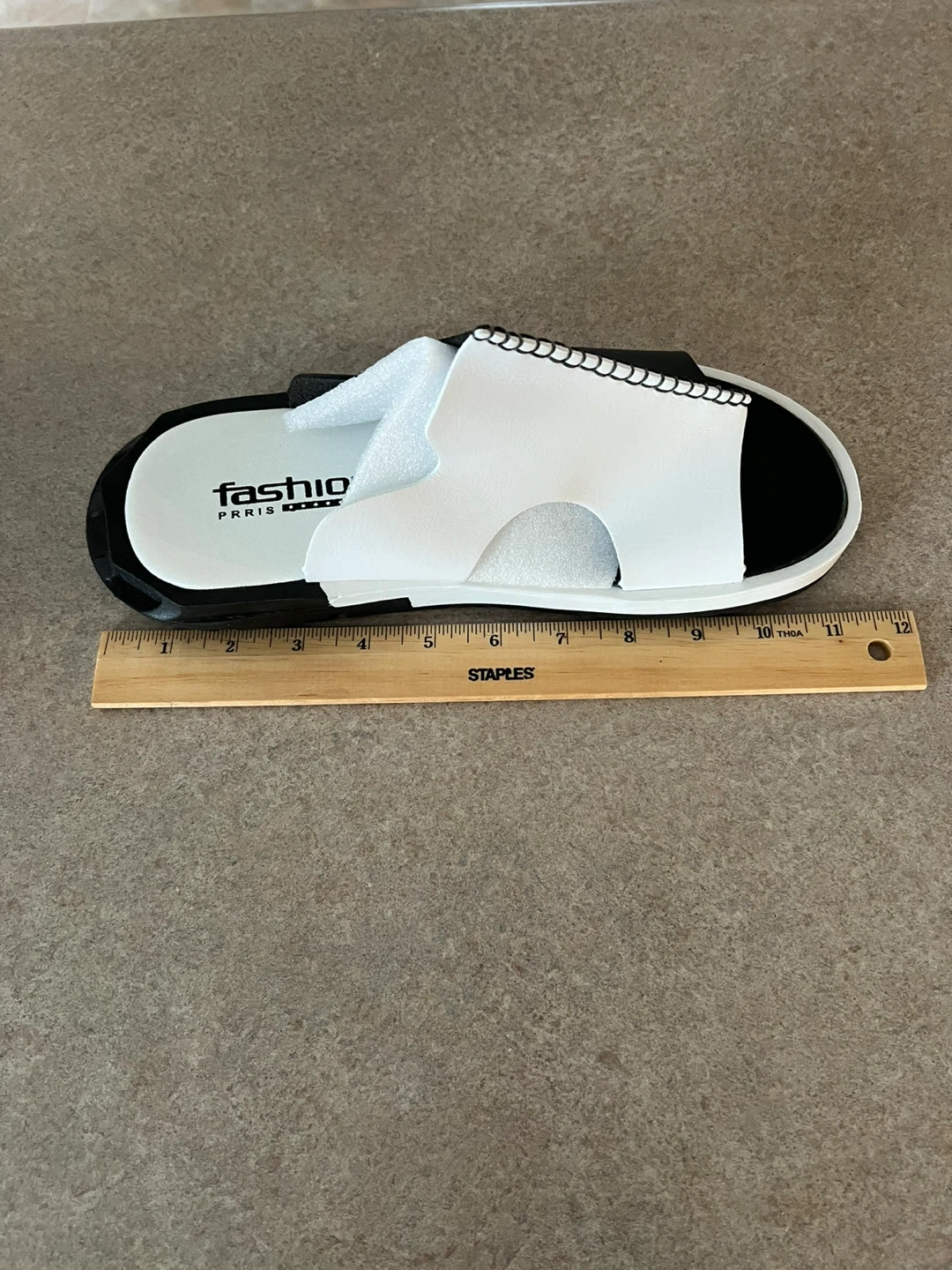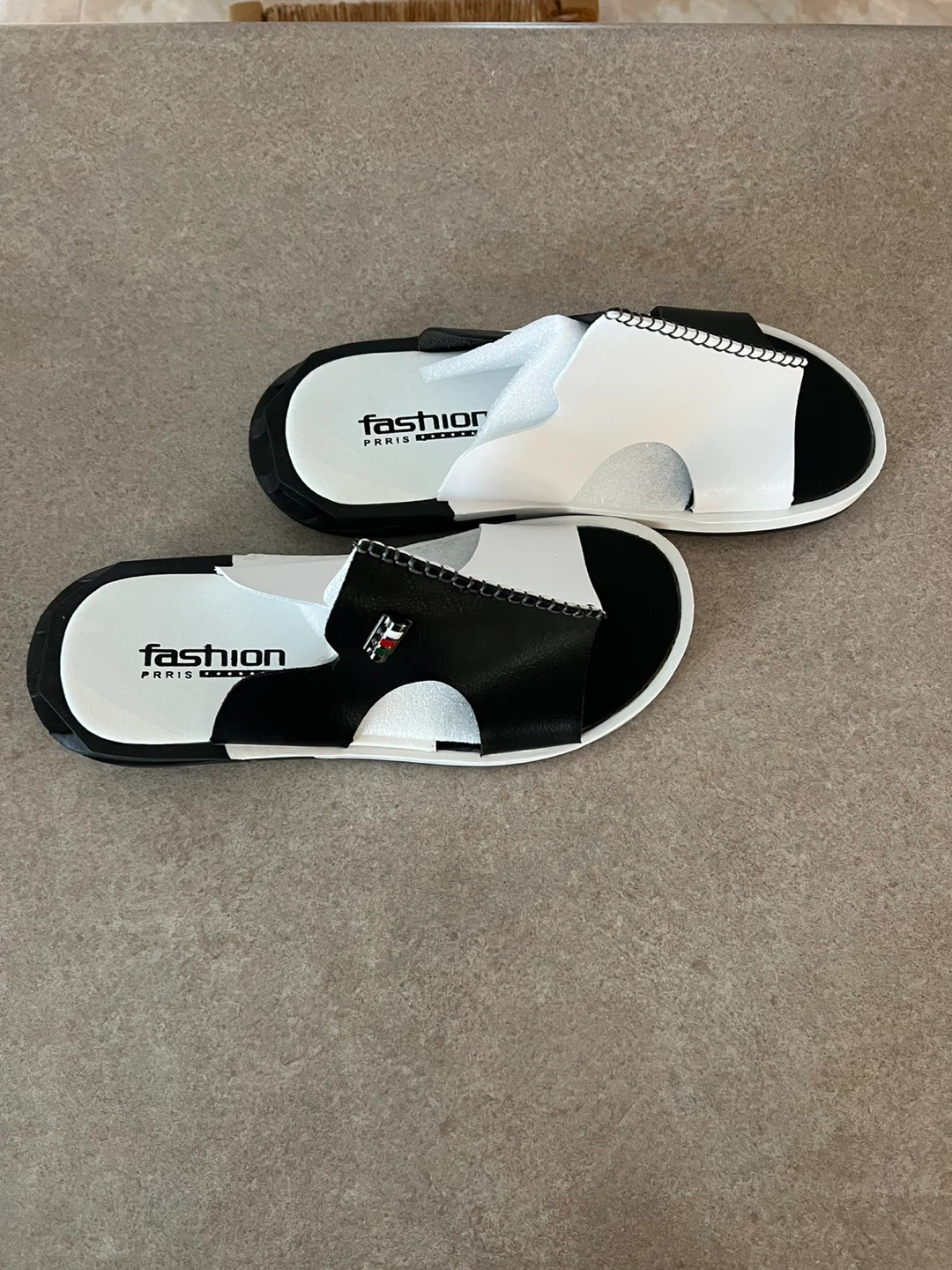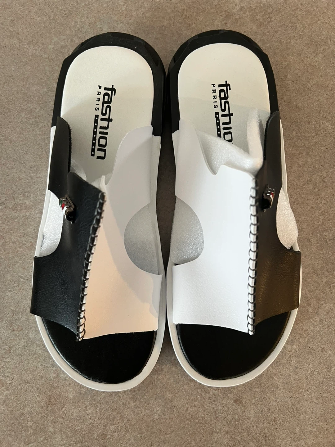 Selling a pair of Fashion Paris sandals. They are black and white and come in the original box! They appear to be in new condition. Sz10.5