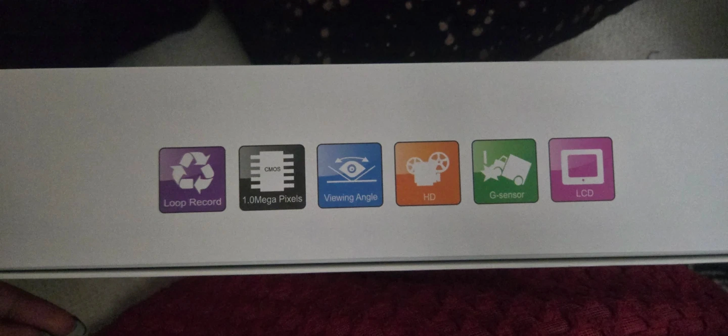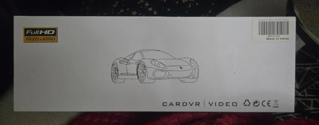 This is a CARDVR FHD 1080P car rear view mirror with DVR. It has loop recording, 1.0 Megapixels, and a G-sensor. It includes an LCD screen for viewing.