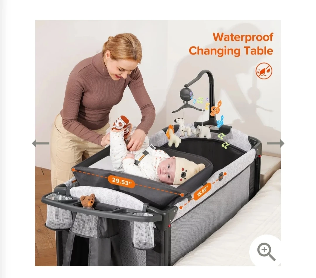 This versatile playpen offers a safe space for your little one with a 4-layer mattress for comfort and support. It includes a waterproof changing table and a bassinet for naps. Setup is a breeze with its 1-step assembly. This playpen is designed for convenience for parents and comfort for babies.