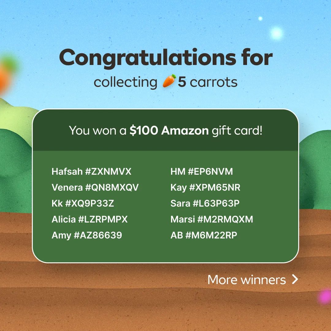 2. Some users may share the same name so please check the unique user number. To view your user number go to My Karrot > View profile. Our team has already reached out to all winners individually.