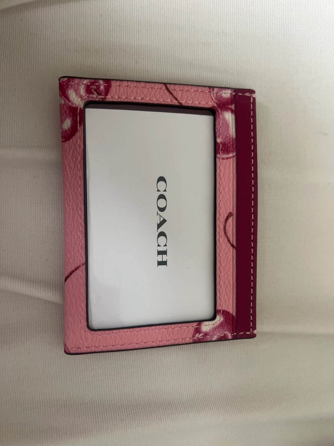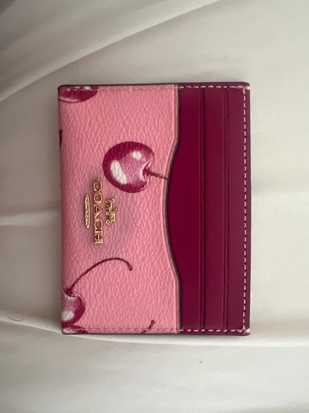 Selling a cute Coach slim ID card case with a cherry print! It's in brand new condition with tags and perfect for carrying your essential cards. The colors are a lovely mix of pink and red. Perfect for adding a touch of style to your everyday essentials. Retails for $88