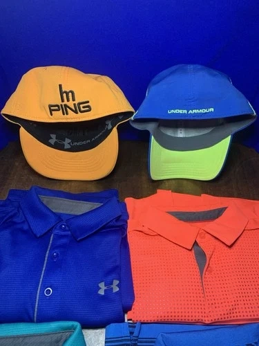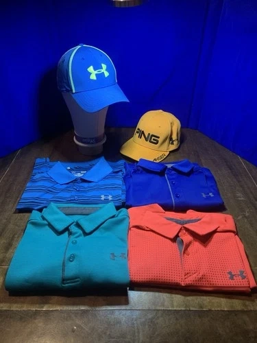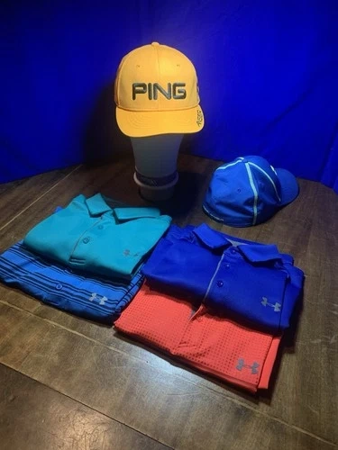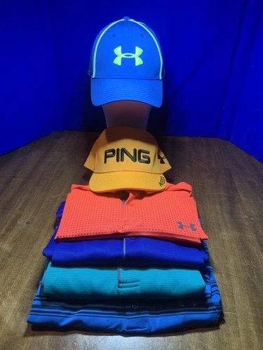 This listing includes a great bundle of authentic Under Armour golf apparel, perfect for the course, gym, or casual wear. All items are in good pre-owned condition and come from a smoke-free environment. Bundle includes: 4 Under Armour HeatGear Golf Polo Shirts, 1 Under Armour Golf Hat, 1 Ping Golf Hat. Details: Men’s size Small (SM), HeatGear moisture-wicking performance fabric, Lightweight breathable golf polos, Athletic fit perfect for warm weather play, Multiple colors included. Measurements are shown in the photos to ensure proper fit. Items are in good used condition with normal wear from use. Please review all photos carefully as they are part of the description. Perfect for: Golf, Athletic wear, Casual everyday wear, Under Armour collectors.