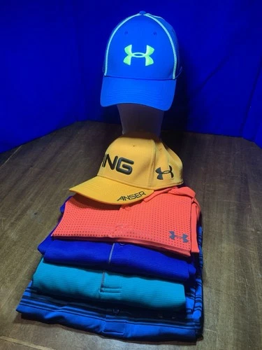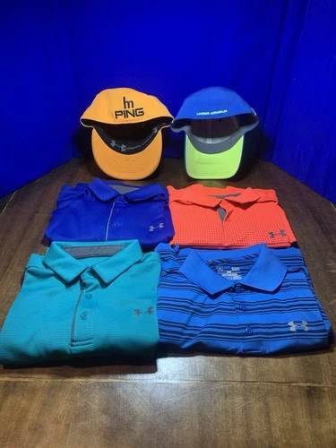This listing includes a great bundle of authentic Under Armour golf apparel, perfect for the course, gym, or casual wear. All items are in good pre-owned condition and come from a smoke-free environment. Bundle includes: 4 Under Armour HeatGear Golf Polo Shirts, 1 Under Armour Golf Hat, 1 Ping Golf Hat. Details: Men’s size Small (SM), HeatGear moisture-wicking performance fabric, Lightweight breathable golf polos, Athletic fit perfect for warm weather play, Multiple colors included. Measurements are shown in the photos to ensure proper fit. Items are in good used condition with normal wear from use. Please review all photos carefully as they are part of the description. Perfect for: Golf, Athletic wear, Casual everyday wear, Under Armour collectors.