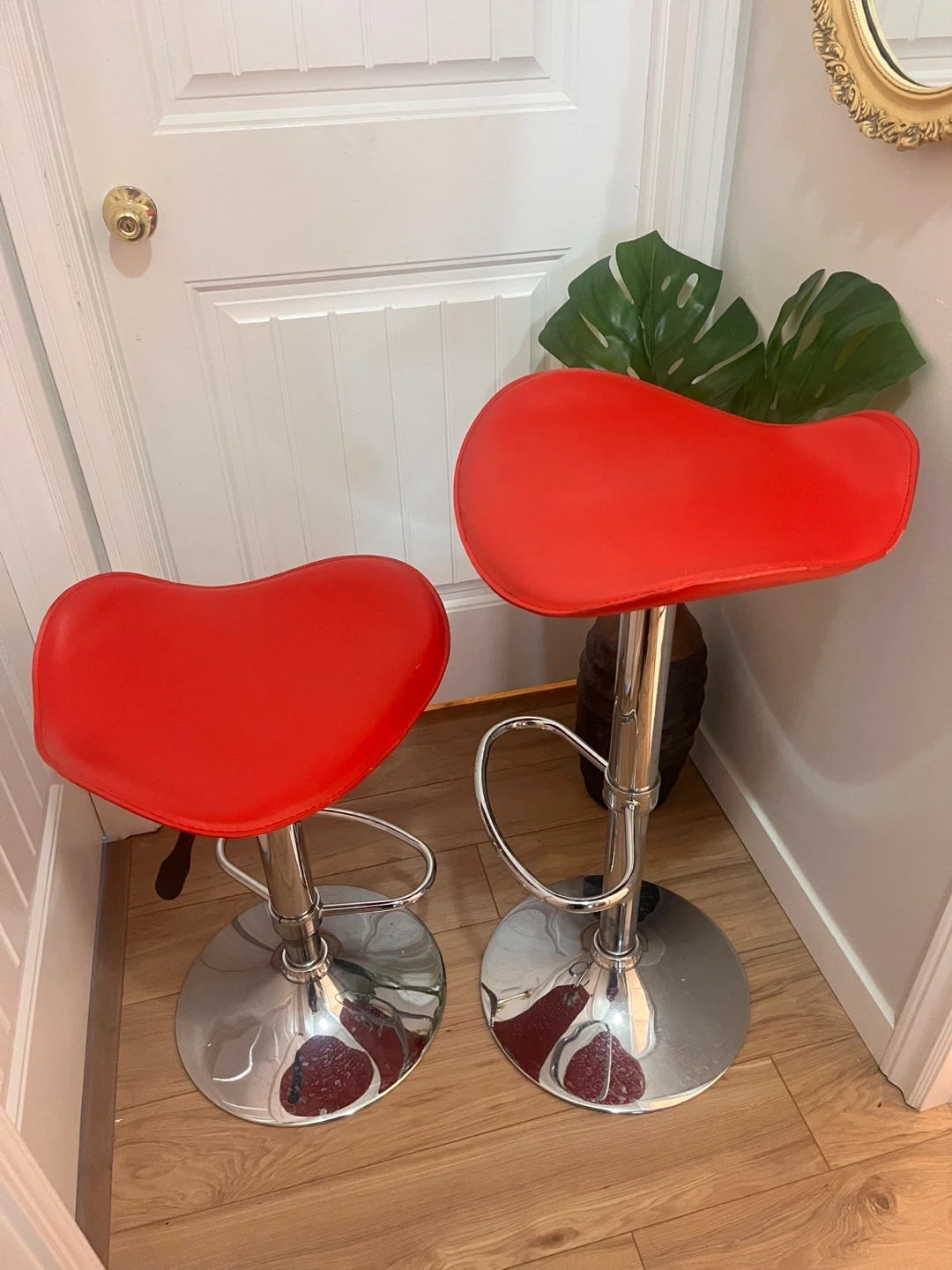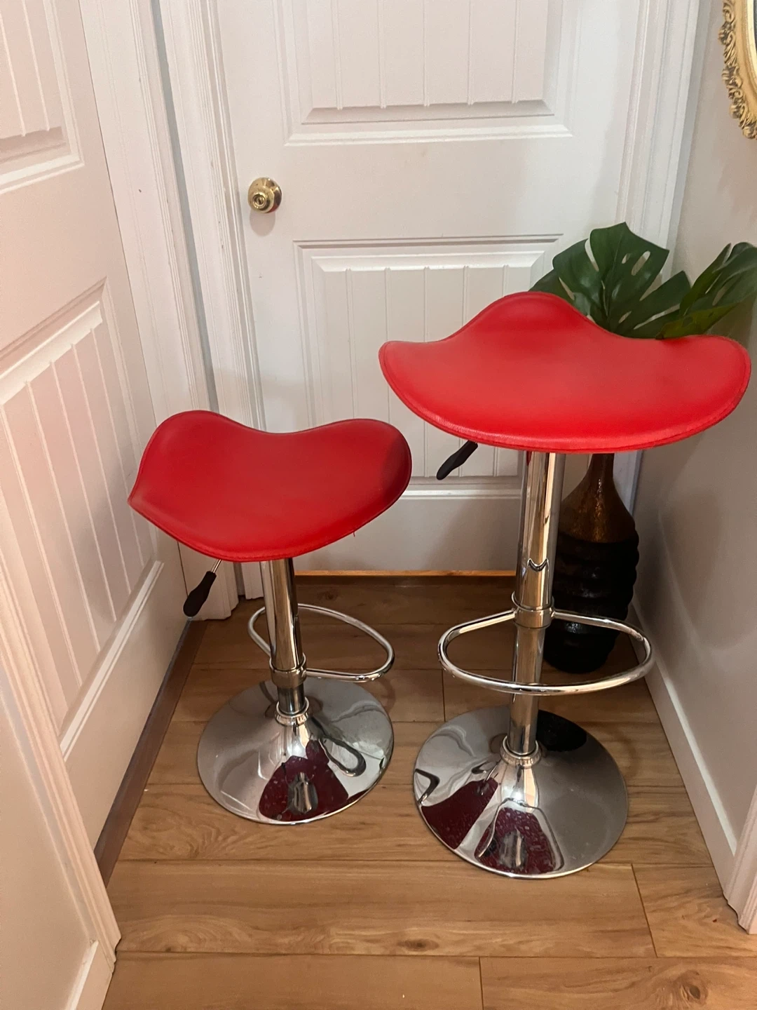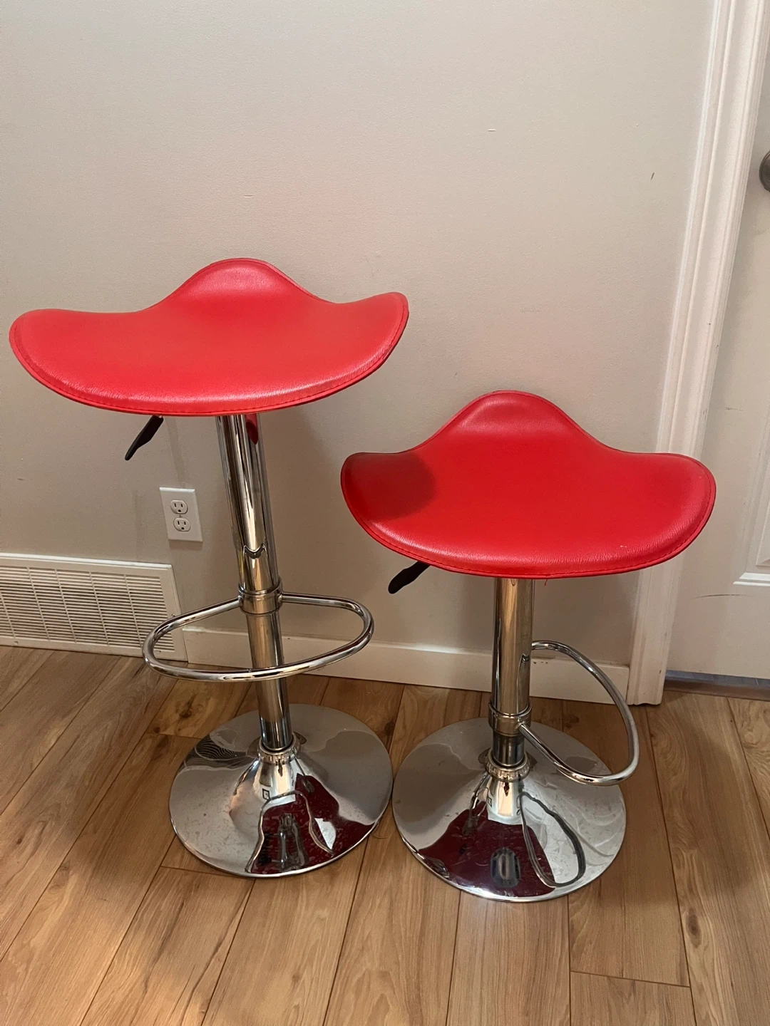 Buy & SellPair Adjustable Red Swivel Stool/BarstoolPair Adjustable Red Swivel Stool/Barstool$100Two red bar stools with chrome bases and adjustable height. Clean and good condition. $100 for pair Seat measurements: 18 inches x 17.5 inchesWHERE TO MEETCalderView MapSELLERverifiedAmethystKensington1103 reviews0 chats·1 favorites·10 viewsSEND CHAT TO SELLERHi Amethyst! I’m interested in your listing.Hi Amethyst! I’m interested in your listing.Get the Karrot app to chatSign In to chat