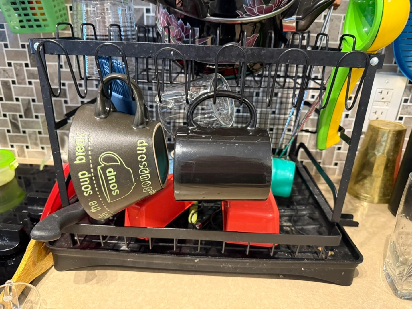 I'm selling a sturdy dish drying rack. It's in great condition and perfect for keeping your dishes organized after washing. It's a great addition to any kitchen!