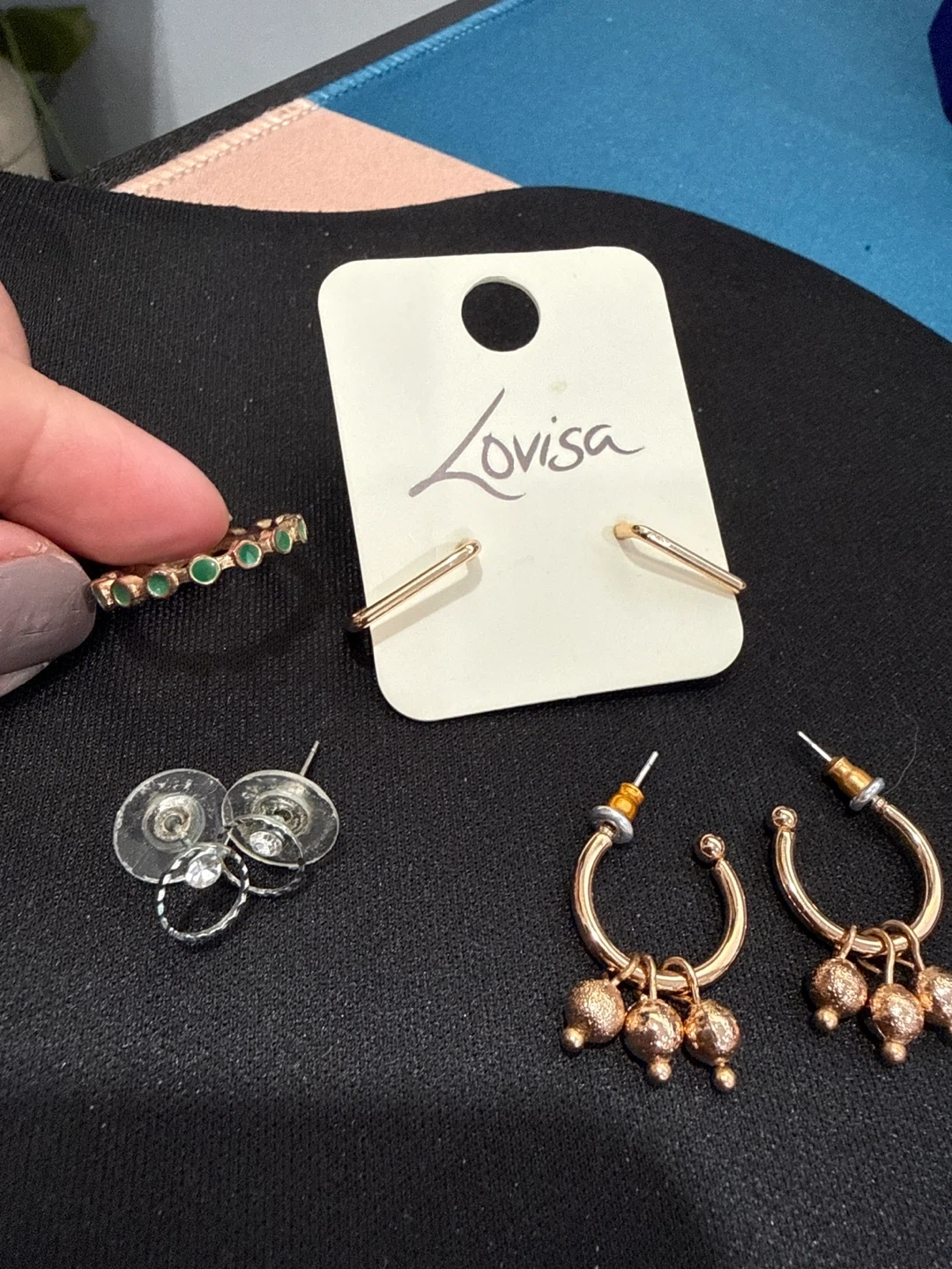 Almost new, only tried on but never really used. Got 3 pieces of earrings from Lovisa brand. Perfect for everyday use. I boughtvthe ring from some random store.