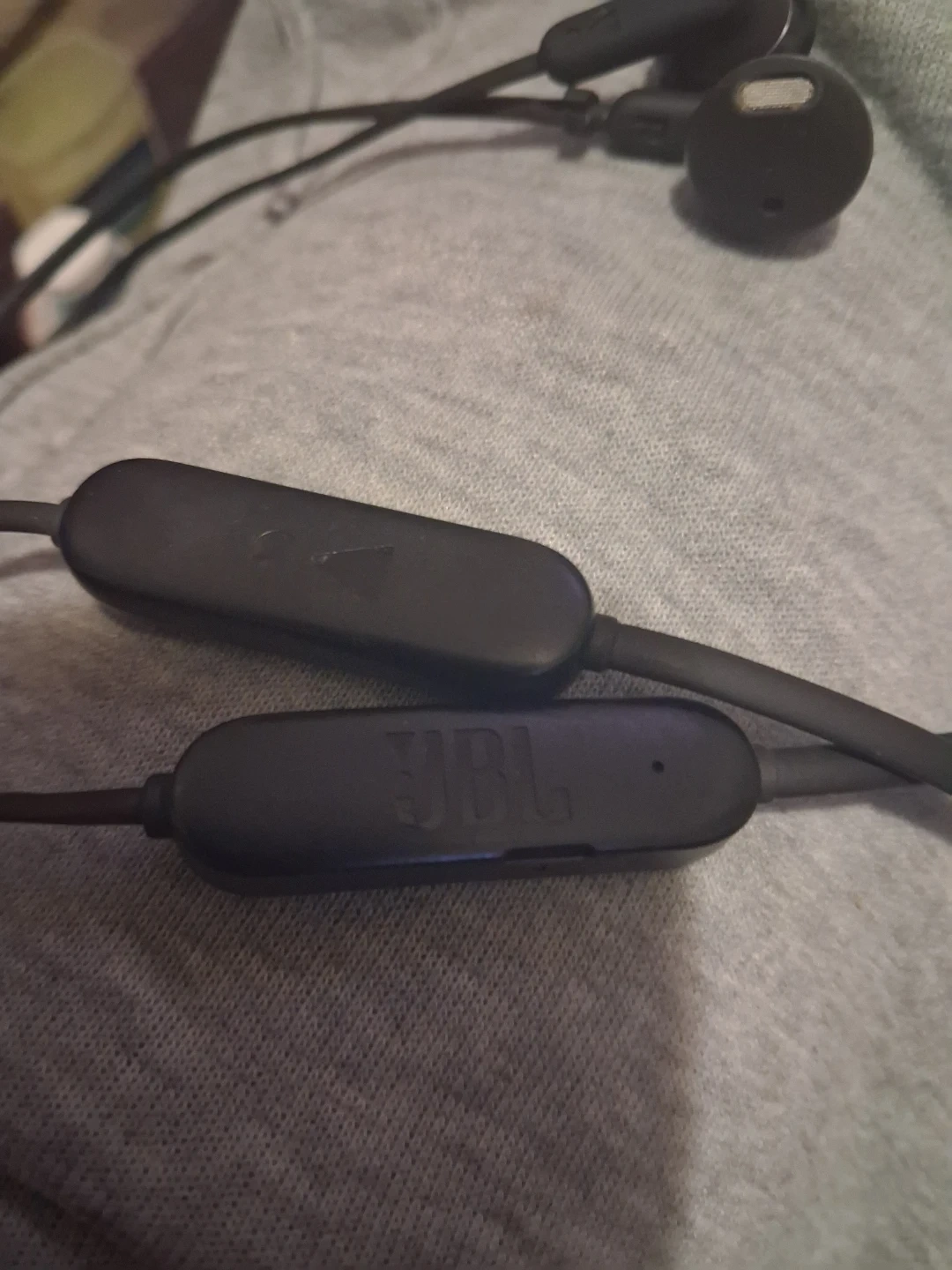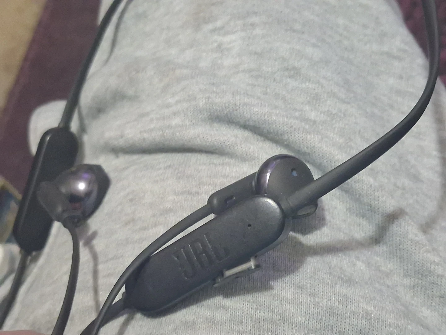 Black JBL Tune 215BT wireless earbuds with 12.5 mm drivers. They feature Bluetooth 5.0 and a flat, tangle-free cable. The headphones offer up to 16 hours of battery life. Includes a three-button in-line remote with a microphone.