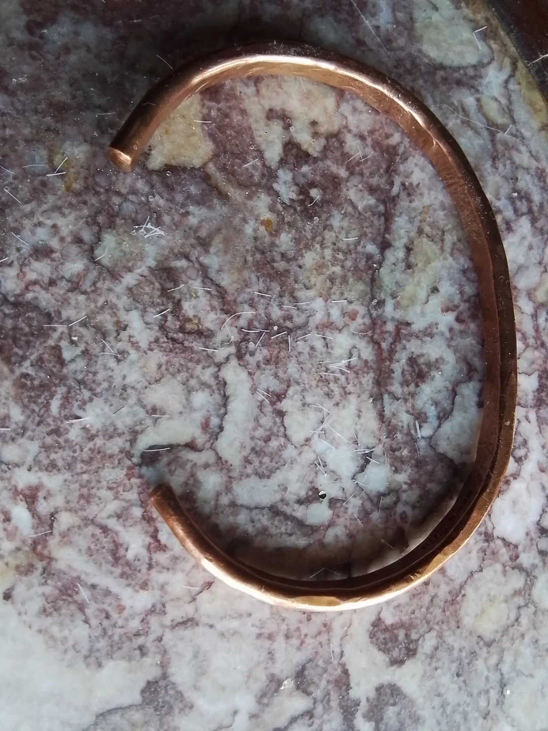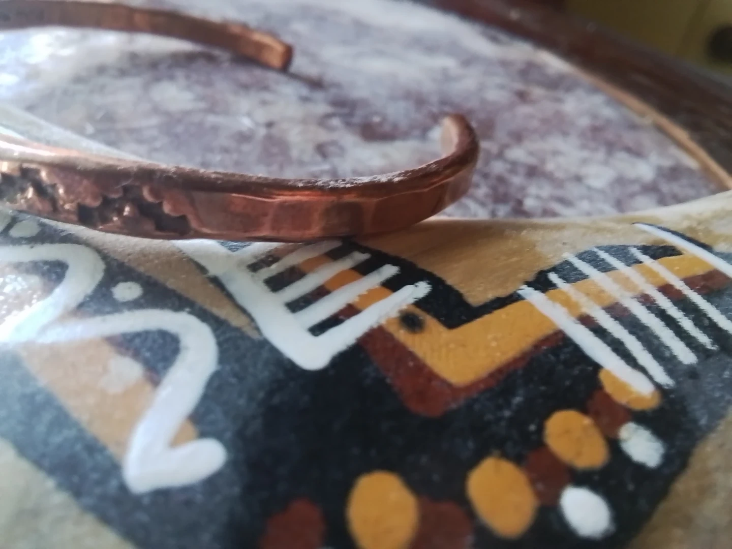 This is a used, vintage Navajo artisan copper open cuff bangle, signed by Shirley Plummer, showcasing unique craftsmanship. It's a distinctive piece of wearable art.