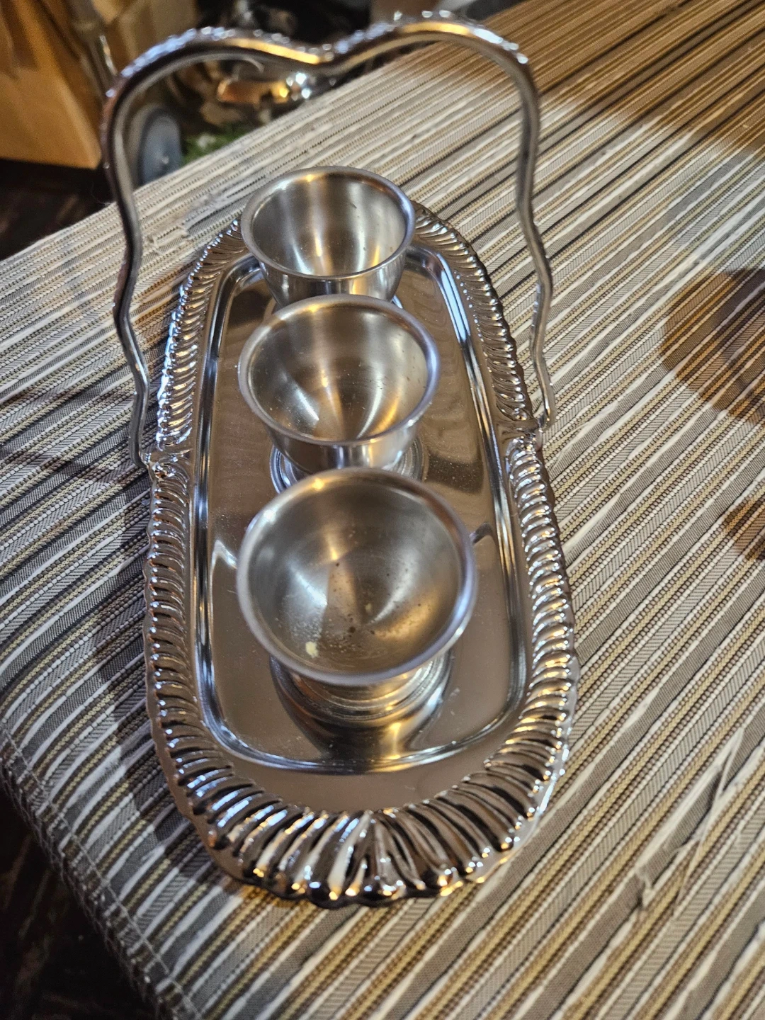 Silver-Plated Serving Set with 3 Cups and Tongs