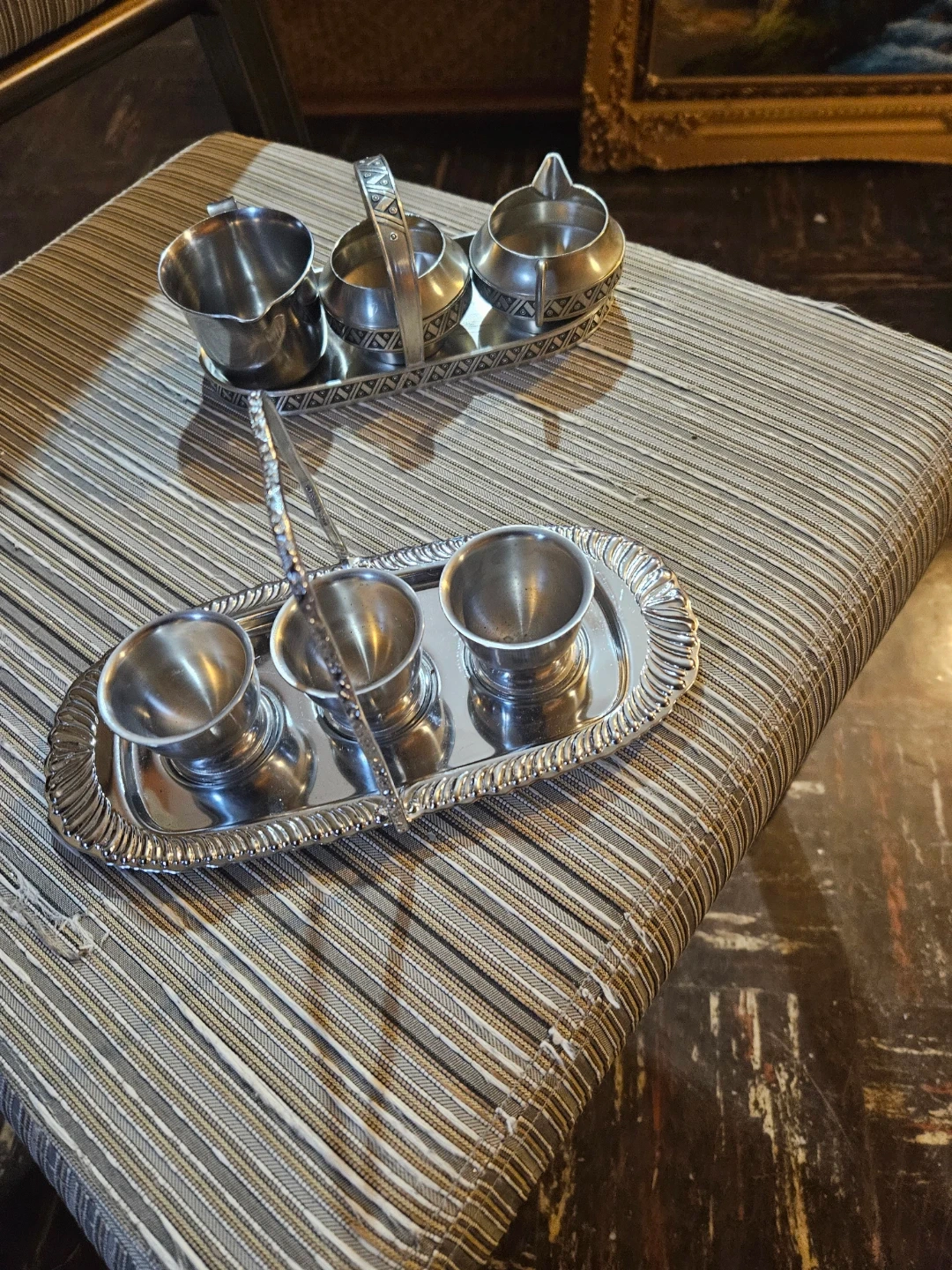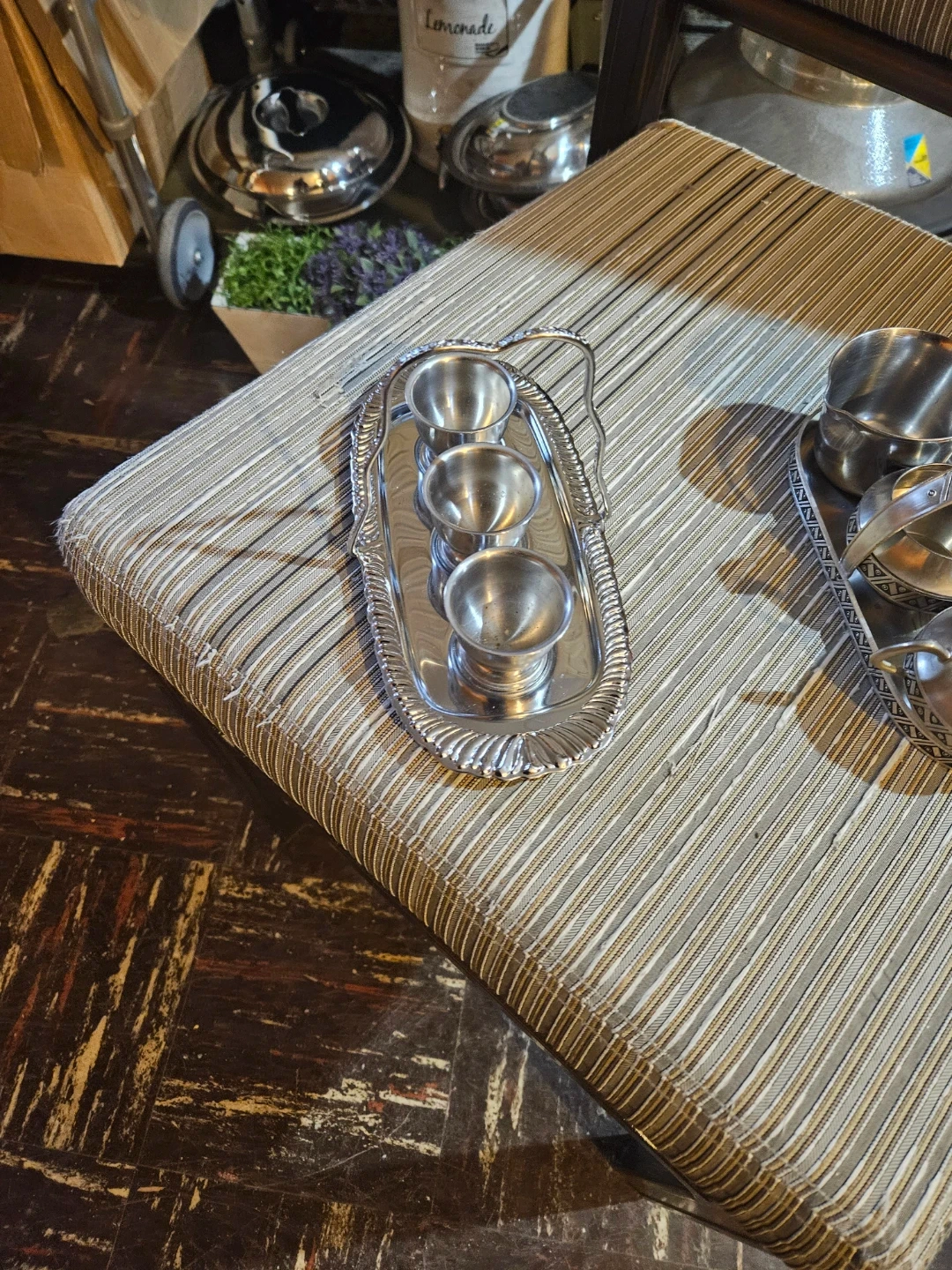 Silver-Plated Serving Set with 3 Cups and Tongs