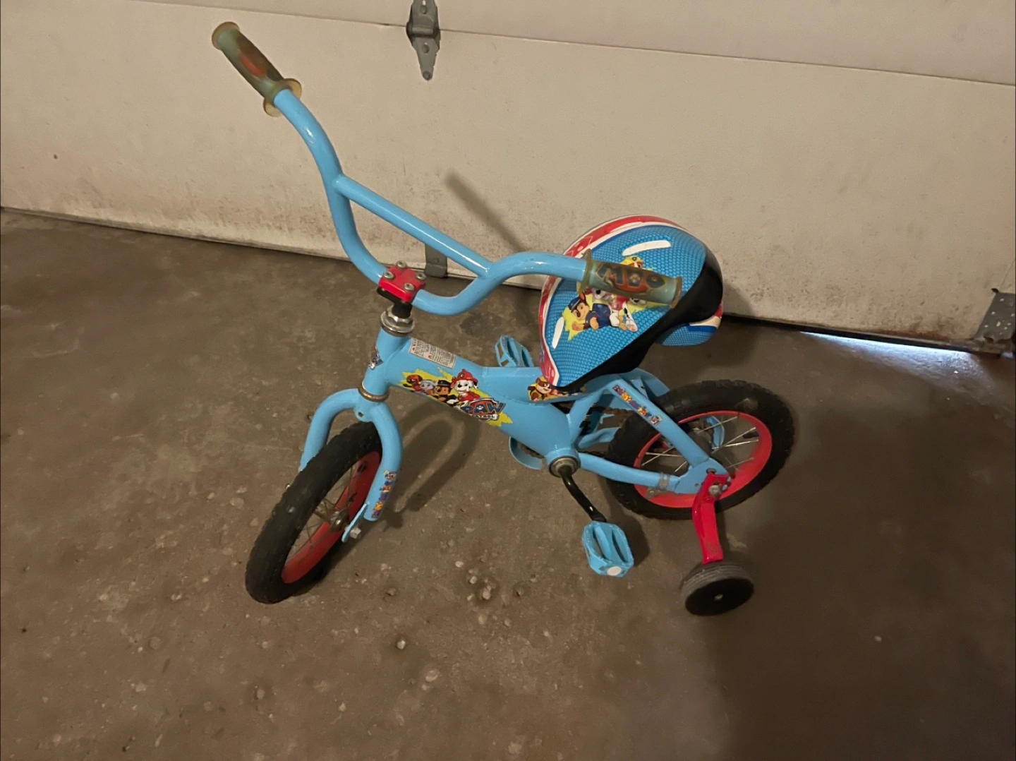 Selling a Paw Patrol themed bike with training wheels and a matching helmet! It's perfect for a little one learning to ride. Also included are Paw Patrol knee and elbow pads for extra safety