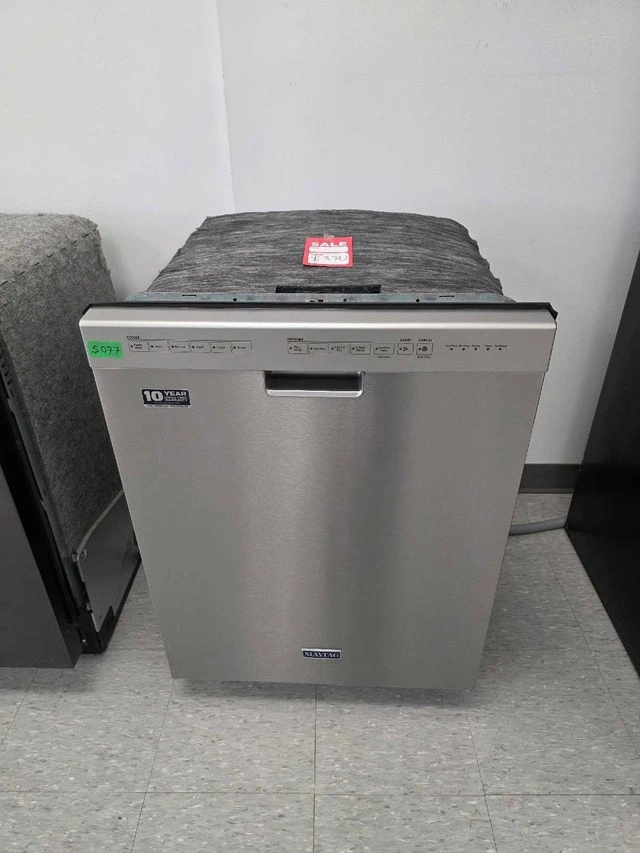 Maytag Built-In Dishwasher – $330 CAD. 3-MONTH WARRANTY included. Professional installation available. Old appliance disposal available. Maytag MDB4949SHZ0 • 24" wide | Fingerprint Resistant Stainless Steel • 14 place setting capacity • Stainless steel tub • PowerBlast® cycle – tackles tough, dried-on food • Hard food disposer with 4-blade stainless chopper • Steam Sanitize option • Heated Dry option • DuraGuard® nylon racks (rust resistant) • Tiered upper rack (fits tall glasses & large plates) • Touch controls • 50 dBA quiet operation • 10-year limited parts warranty on racks, chopper blade & stainless tub • ENERGY STAR® Certified. Feel free to message if you have any questions!