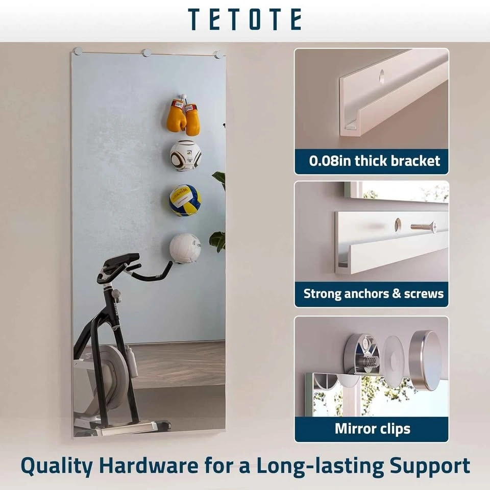 【Durable Hardware for Reliable Support】 The TETOTE Gym Mirror includes sturdy accessories to keep the gym firmly in place. An additional EVA buffer is added to the bracket groove to protect the mirror’s edge and prevent it from sliding off.