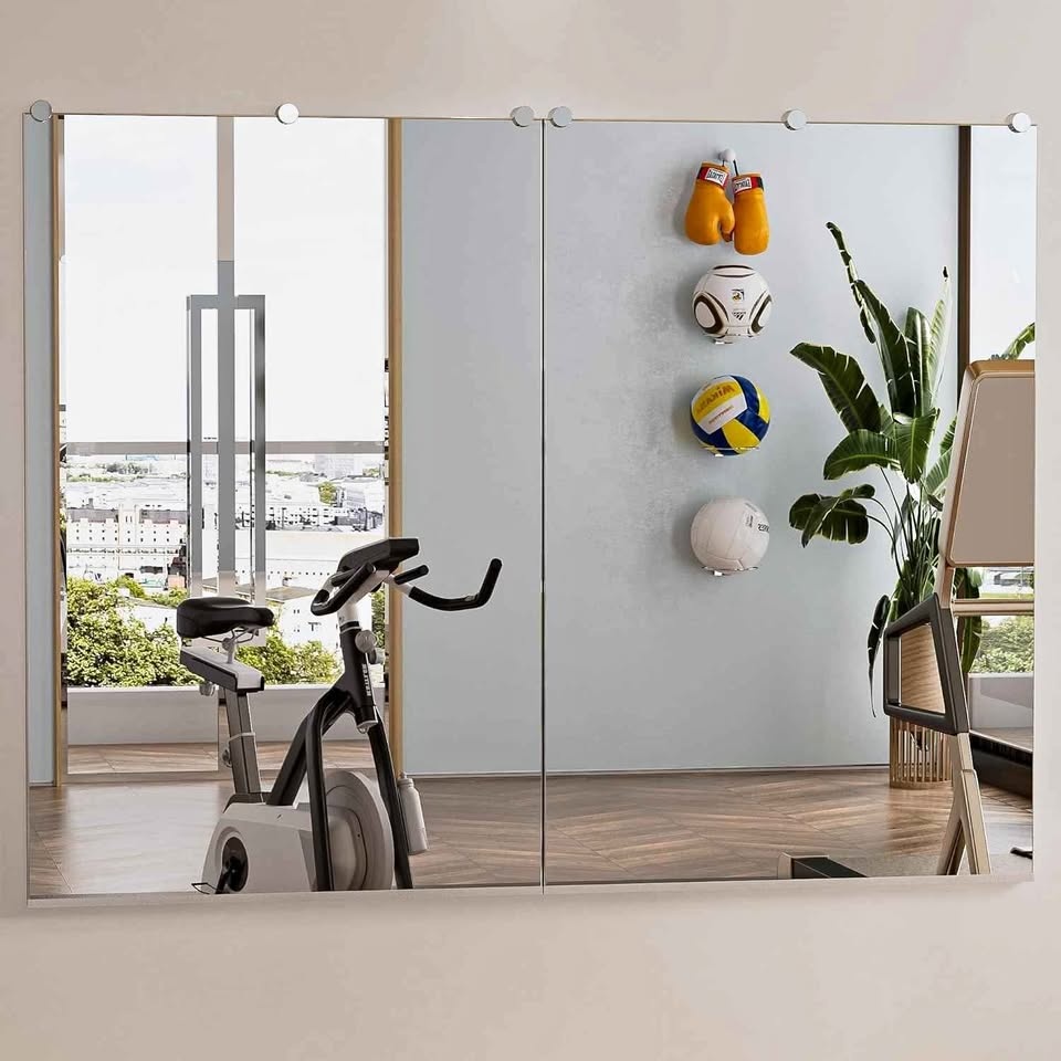 TETOTE Home Gym Mirror 48" x 32" x 2PCS Workout Mirror, Large Full Body Mirror for Fitness, Wall Mounted Long Mirror for Garage, Dance Studio, Bedroom, Oversized Frameless Mirror, 2 PCS