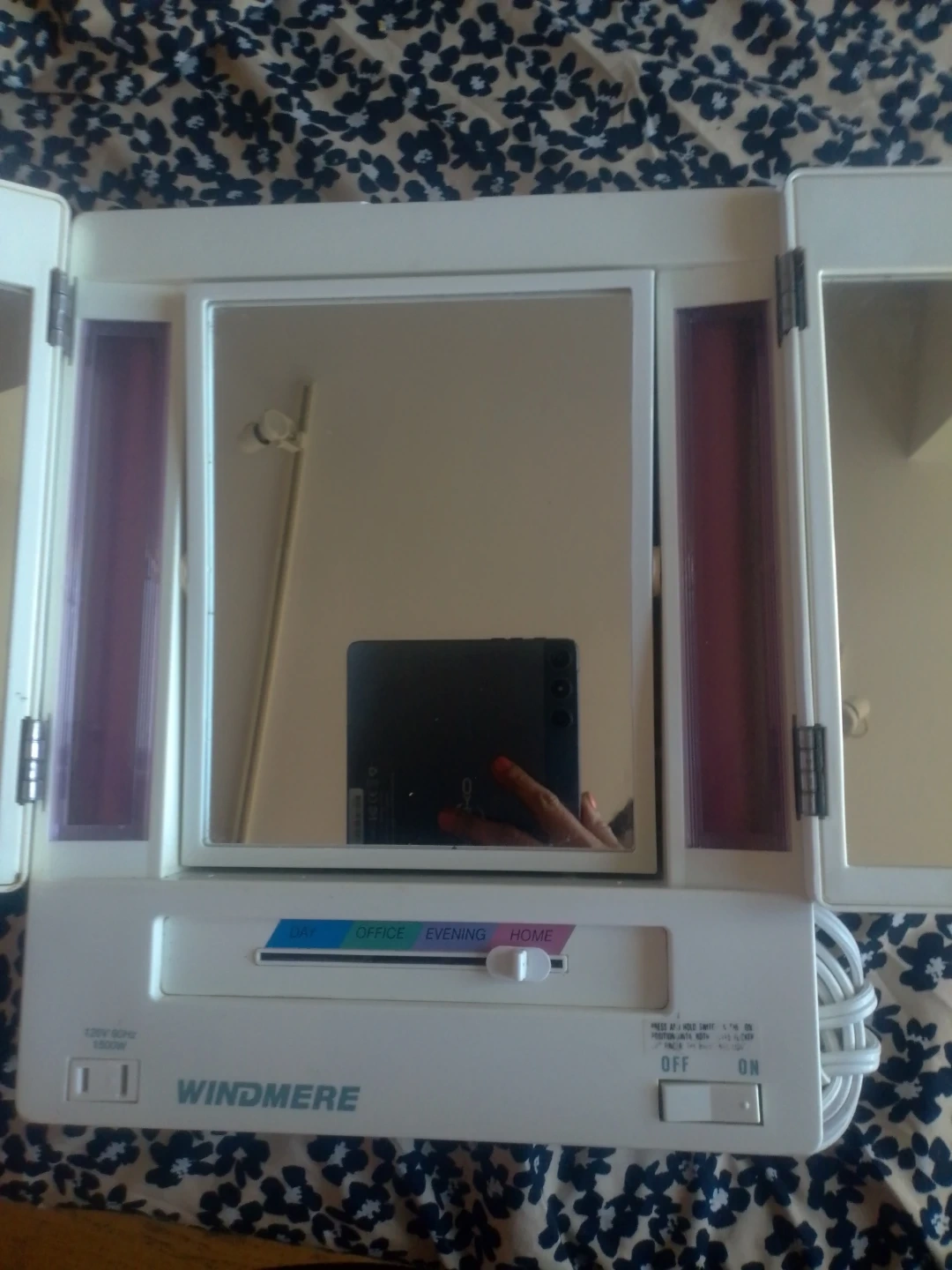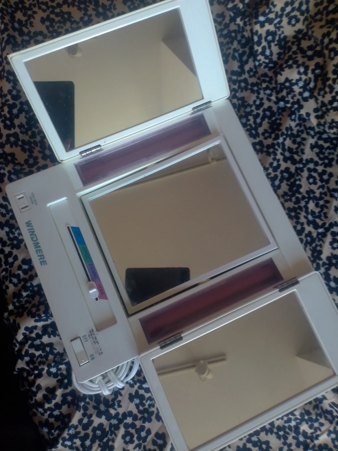 Selling a Windmere lighted makeup mirror. It has different light settings, including day, office, evening, and home. Perfect for getting your makeup just right!