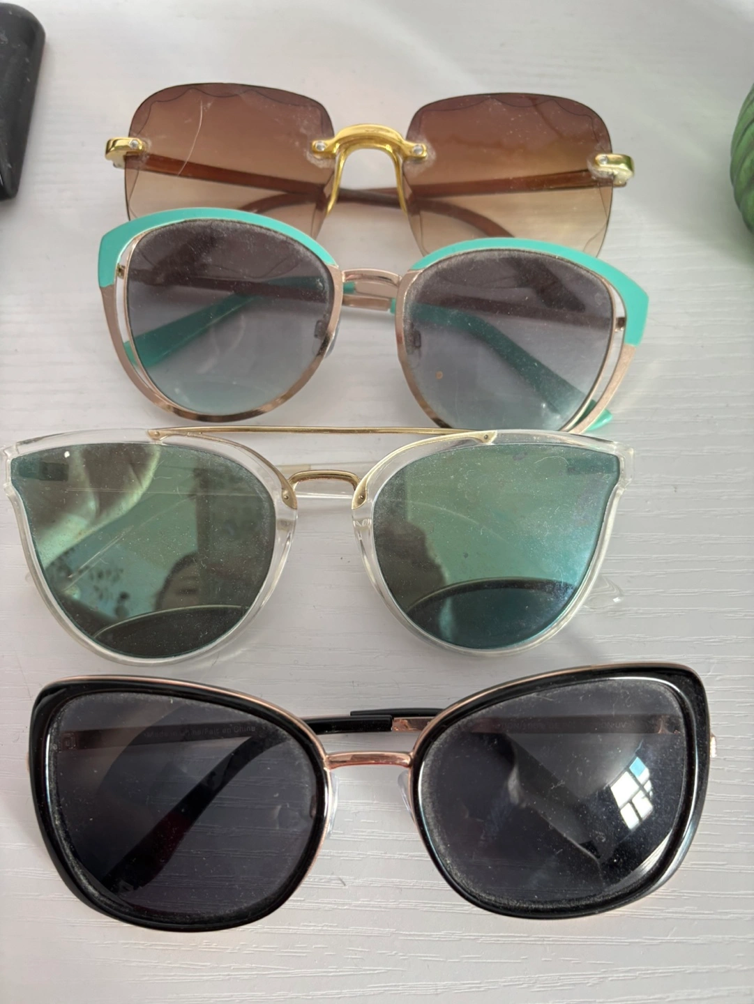 Four pairs of sunglasses, various colours and styles. Some gold accents. Good for summer. Hardly used and in great condition. $15 for all or $7.00 each. Cash only and pick up.