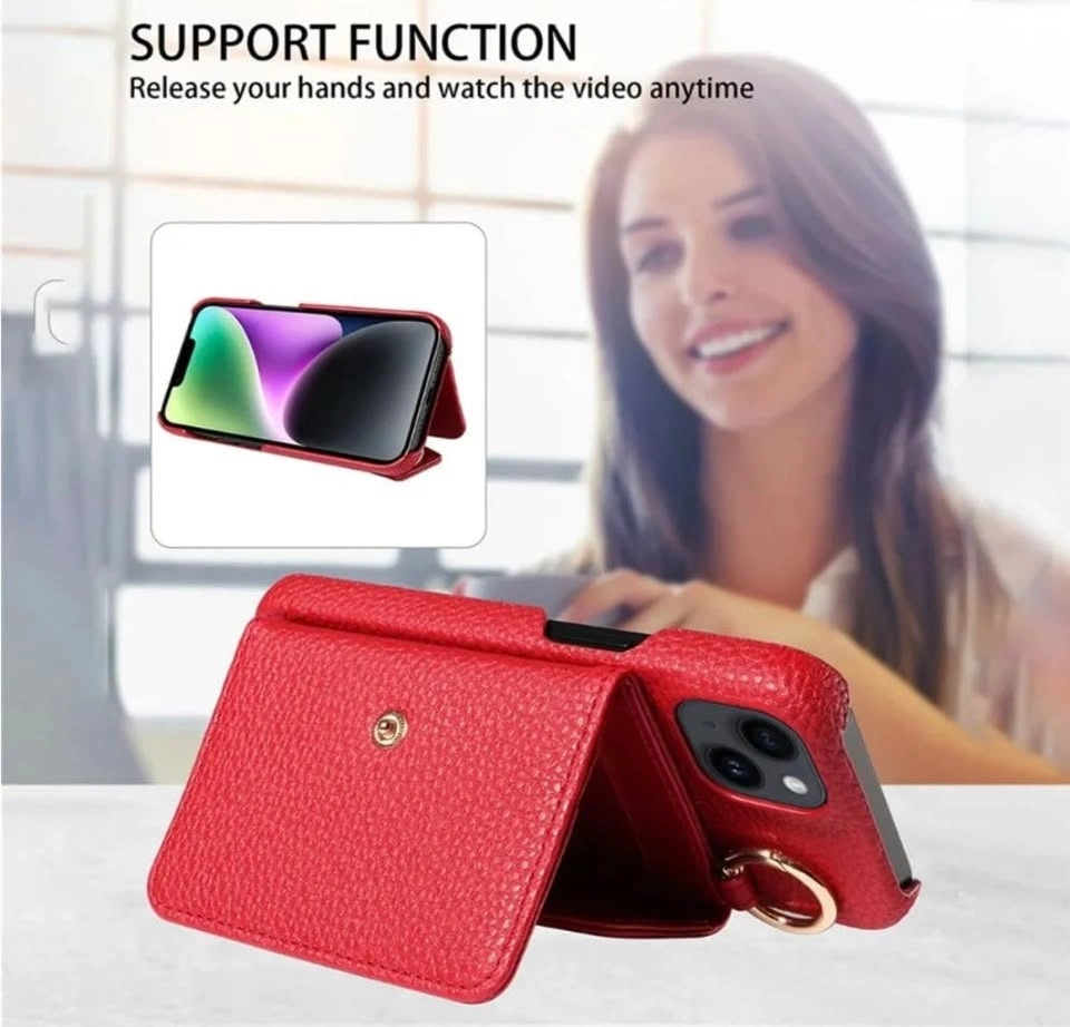 Red Crossbody Wallet Phone Case – iPhone 11 (Card Holder + Ring)