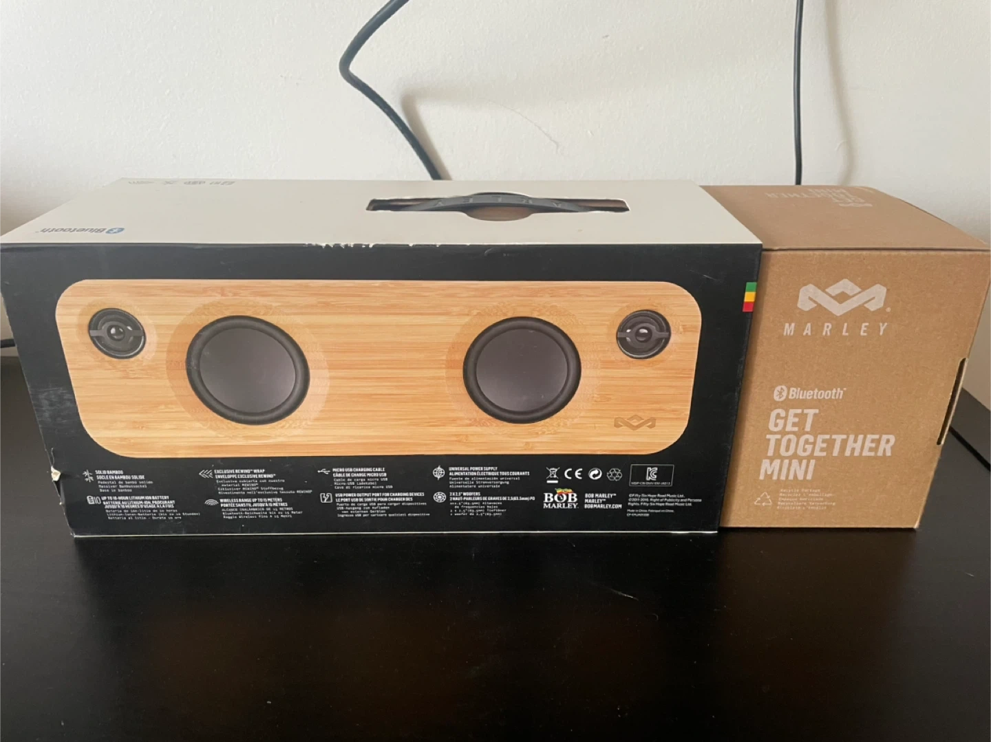 House of Marley Get Together Mini Bluetooth speaker. It's made with sustainable materials and connects wirelessly. This speaker is great for listening to music indoors or outdoors.