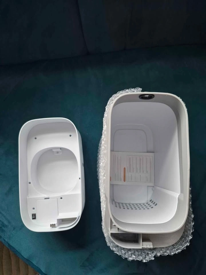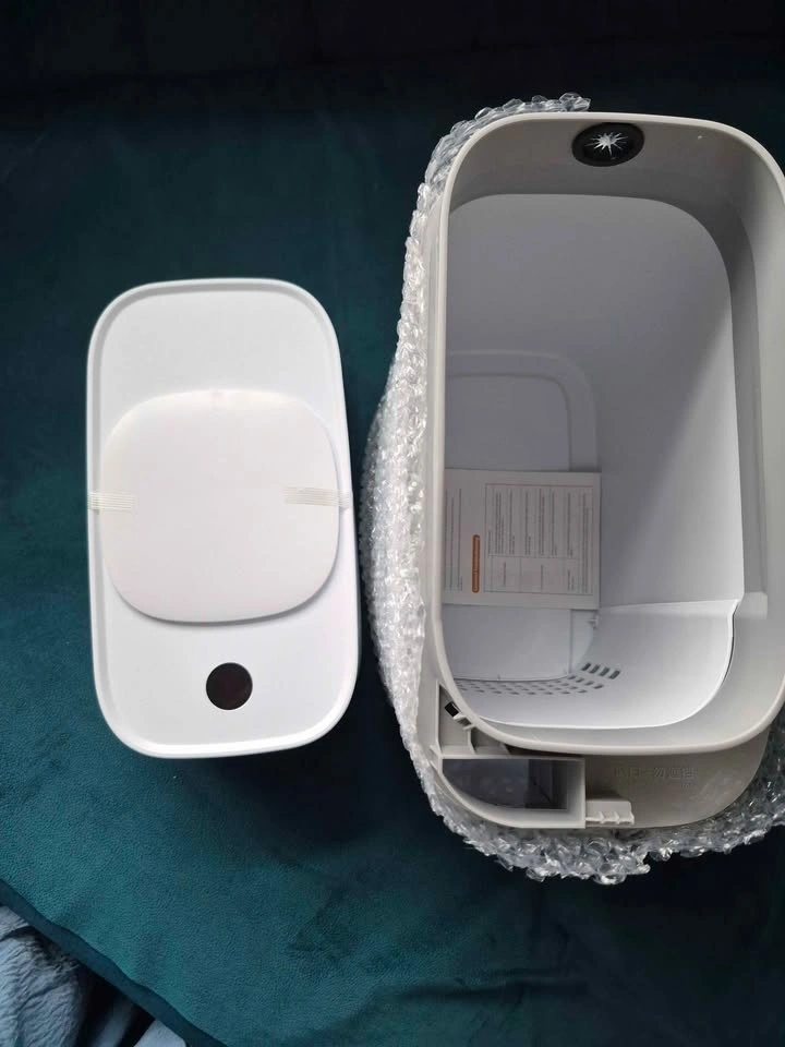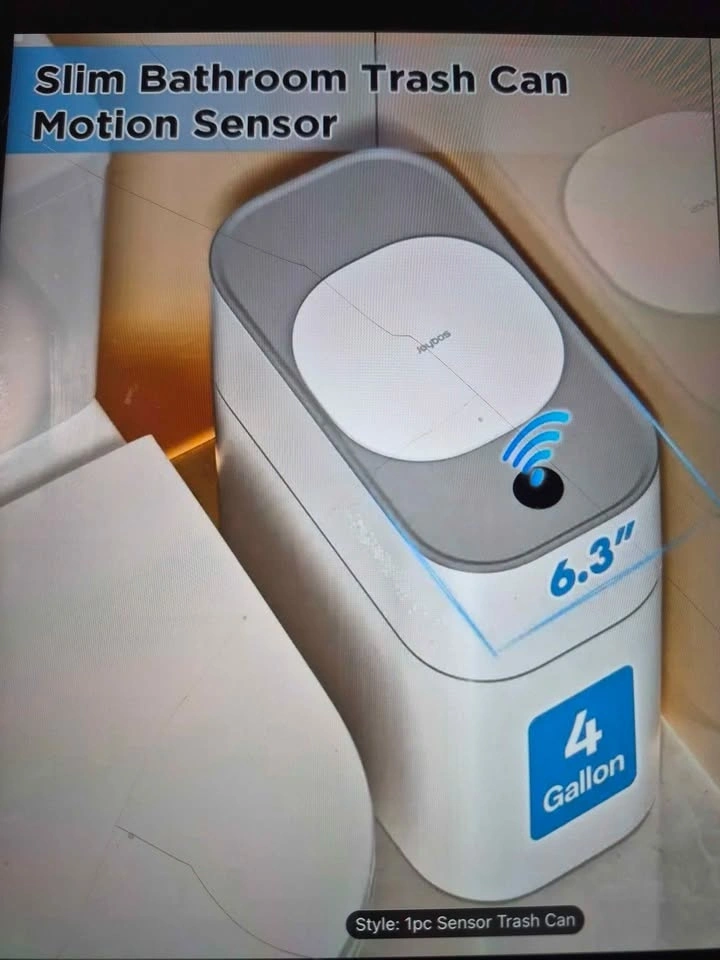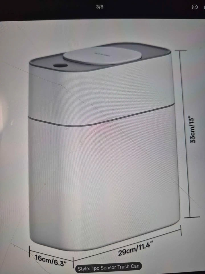 Powered by batteries (not included). Automatic waste bin suitable for kitchen, bedroom, or bathroom. From a smoke-free, pet-free, and child-free home.