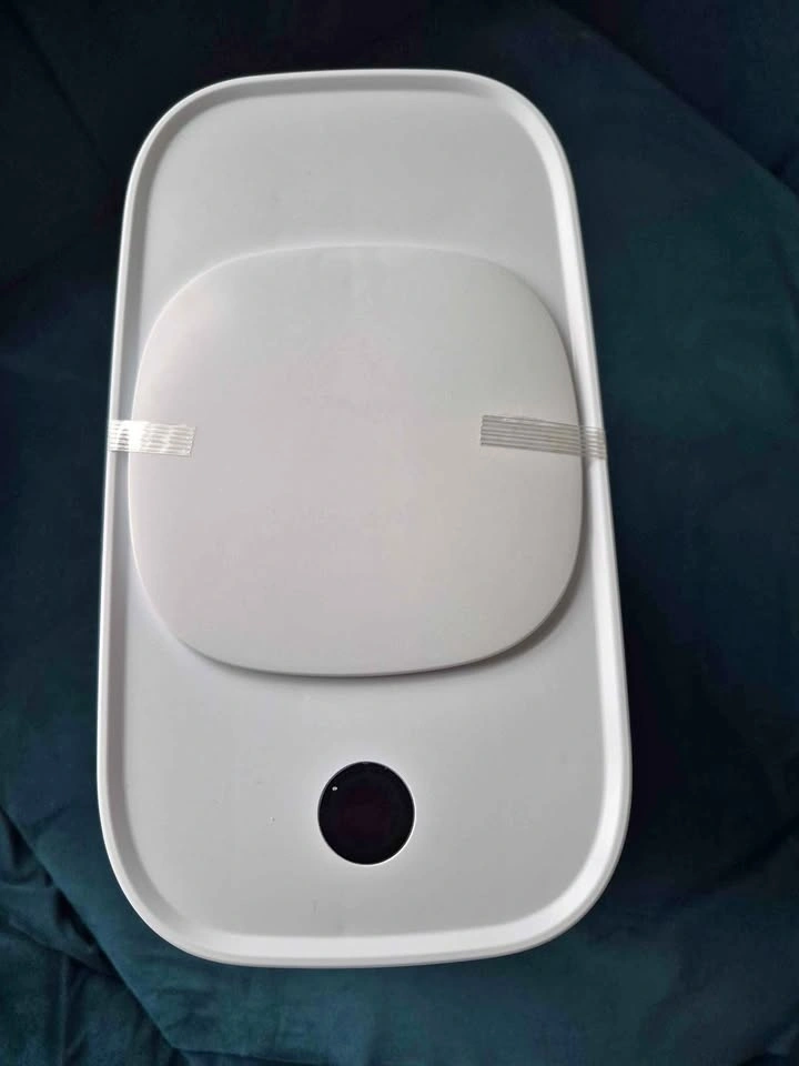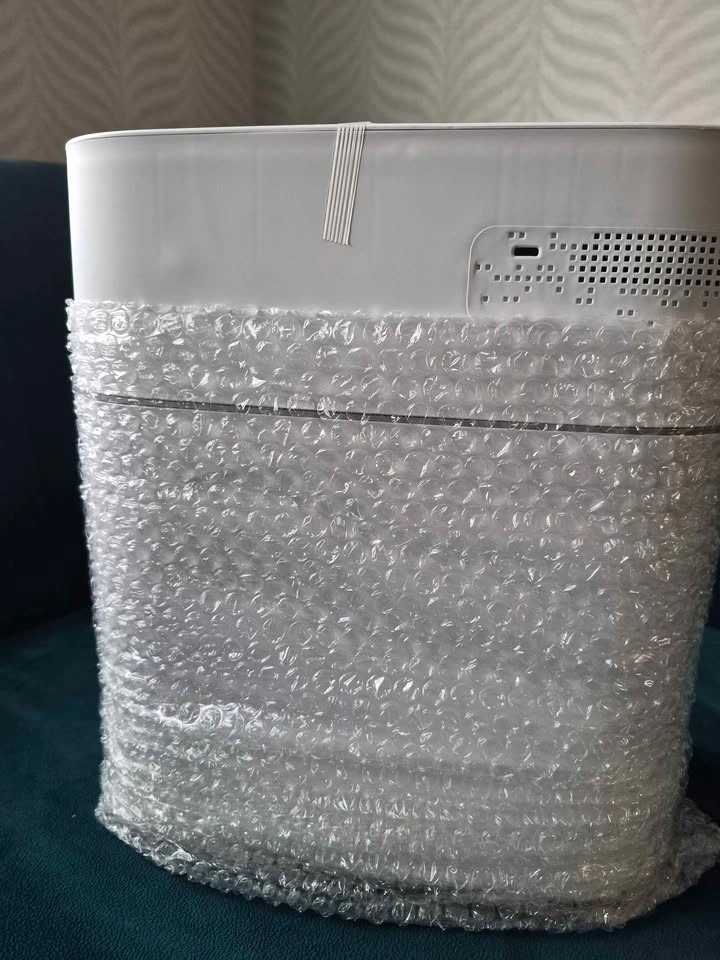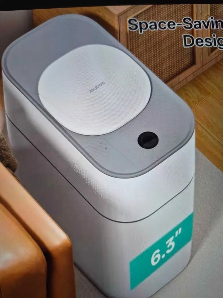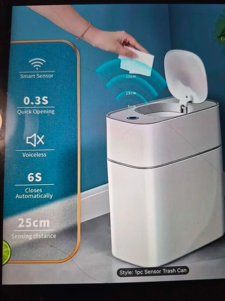 Powered by batteries (not included). Automatic waste bin suitable for kitchen, bedroom, or bathroom. From a smoke-free, pet-free, and child-free home.