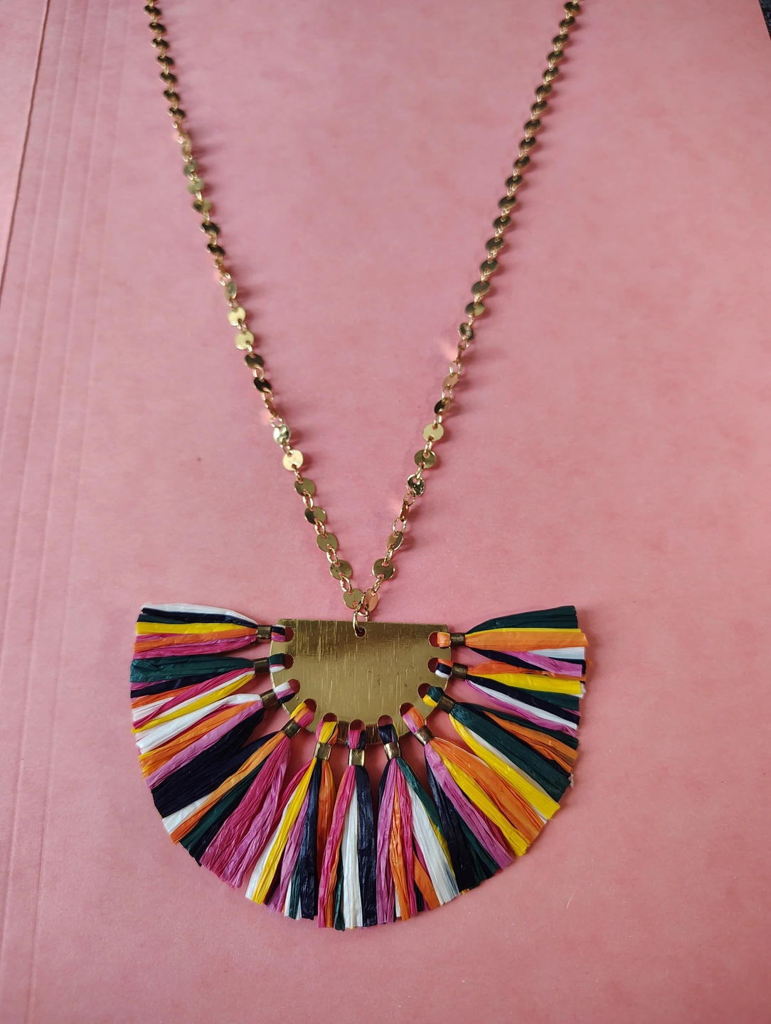 ✨Gold Tone Multi Color Straw Long Necklace ✨
