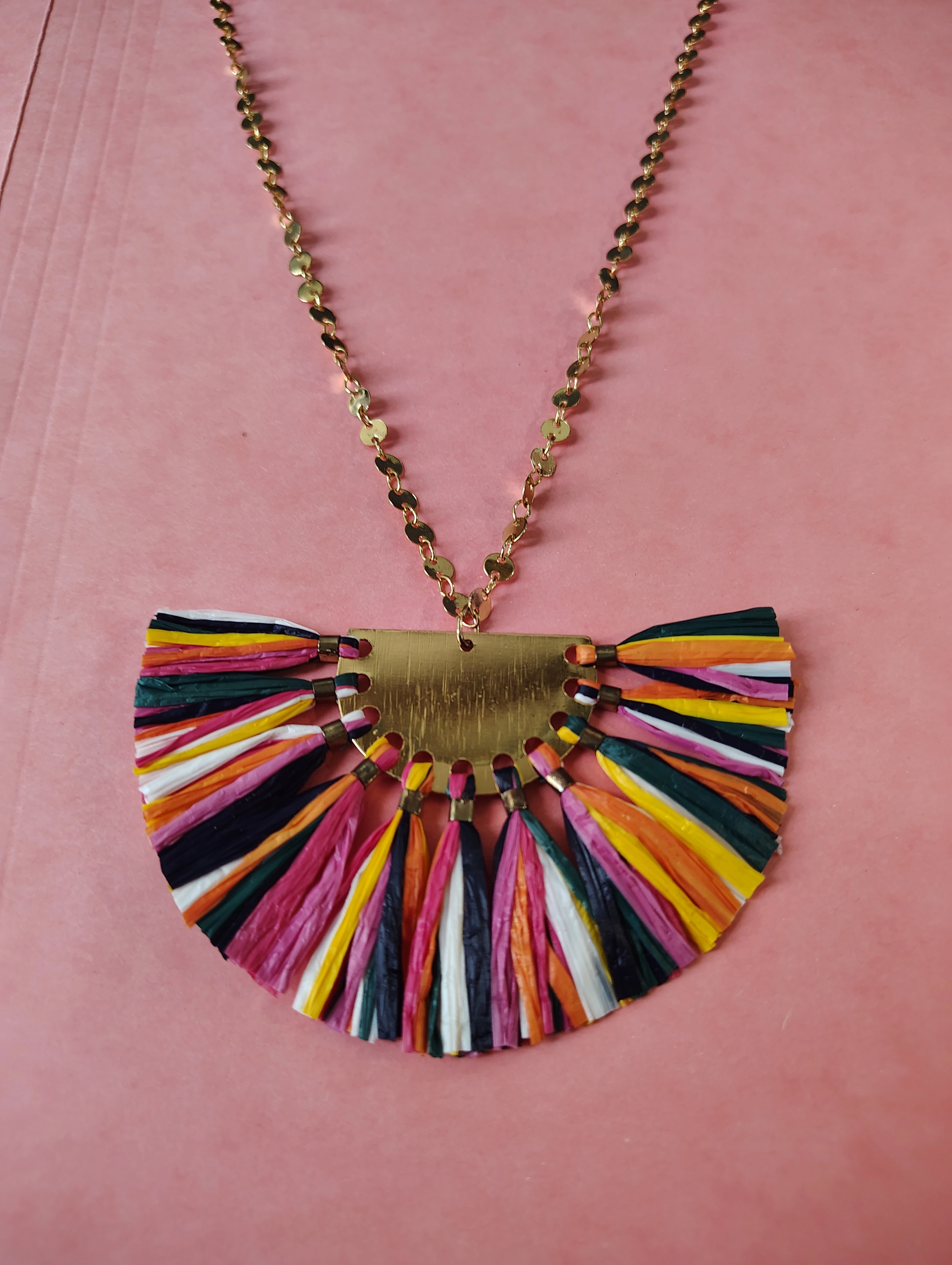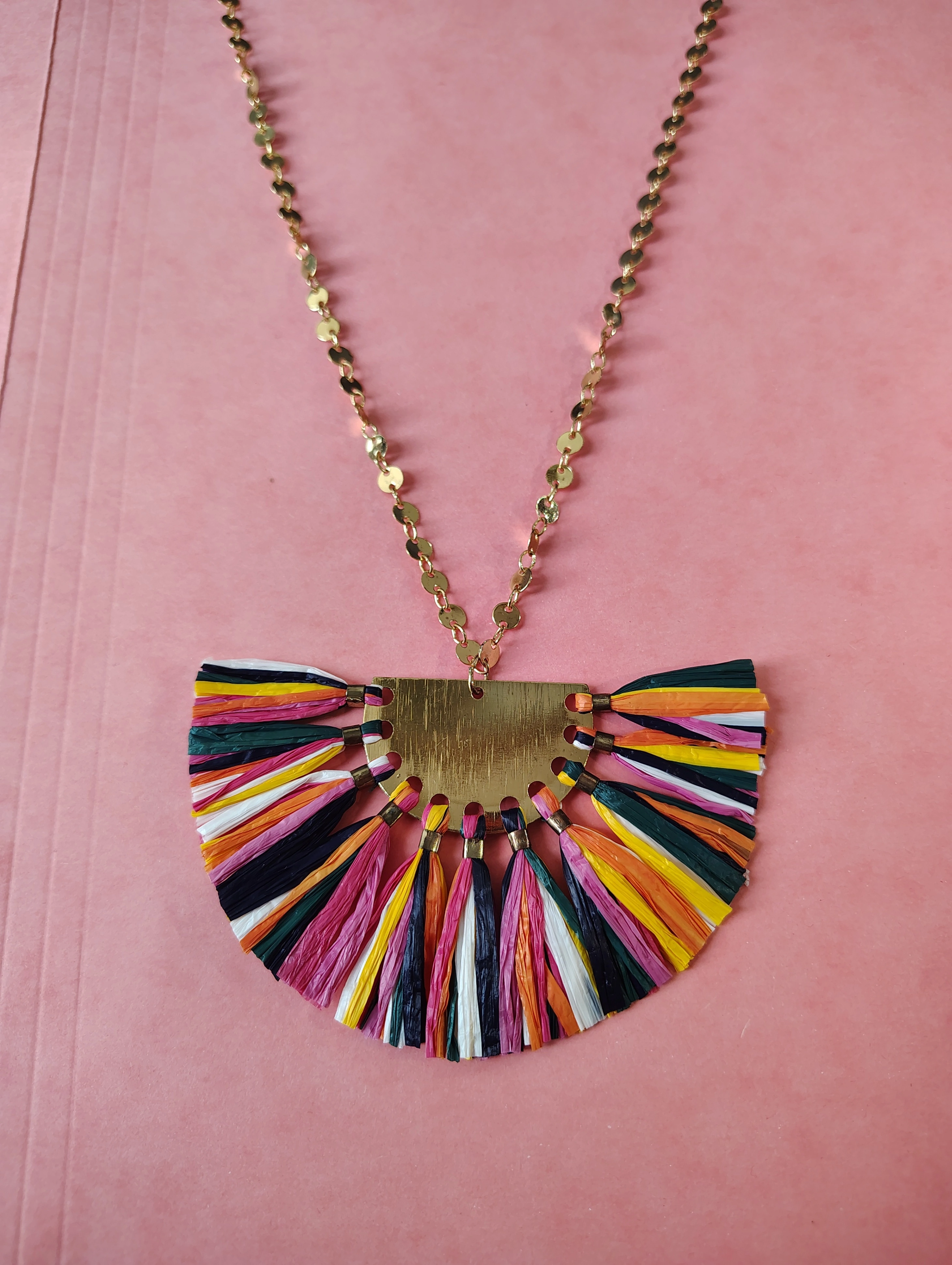 ✨Gold Tone Multi Color Straw Long Necklace ✨