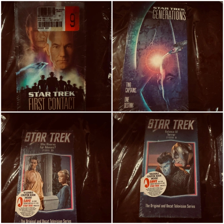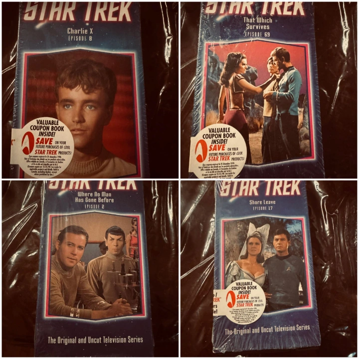 Collection of 24 original Star Trek VHS tapes. Includes various episodes from the original series. Each tape features episode title and number.