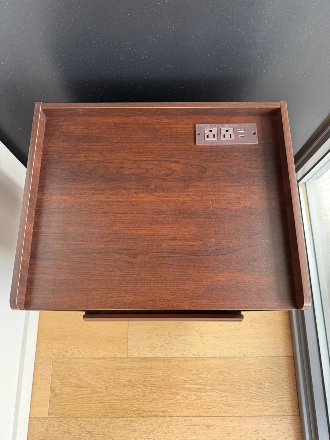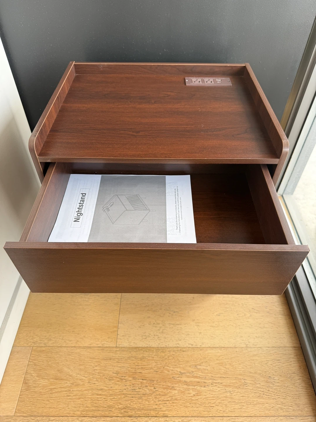 Dark Wood Nightstand with Drawer and Power Outlet
