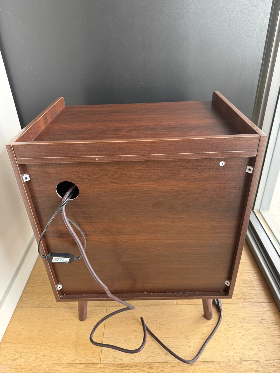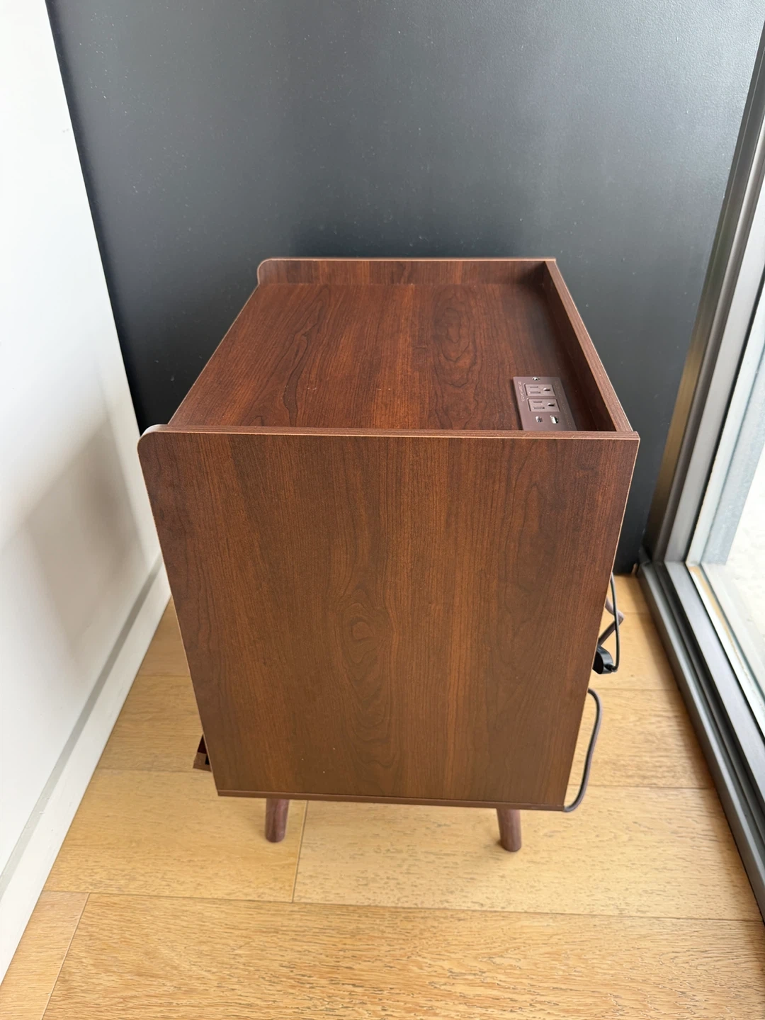 Dark Wood Nightstand with Drawer and Power Outlet