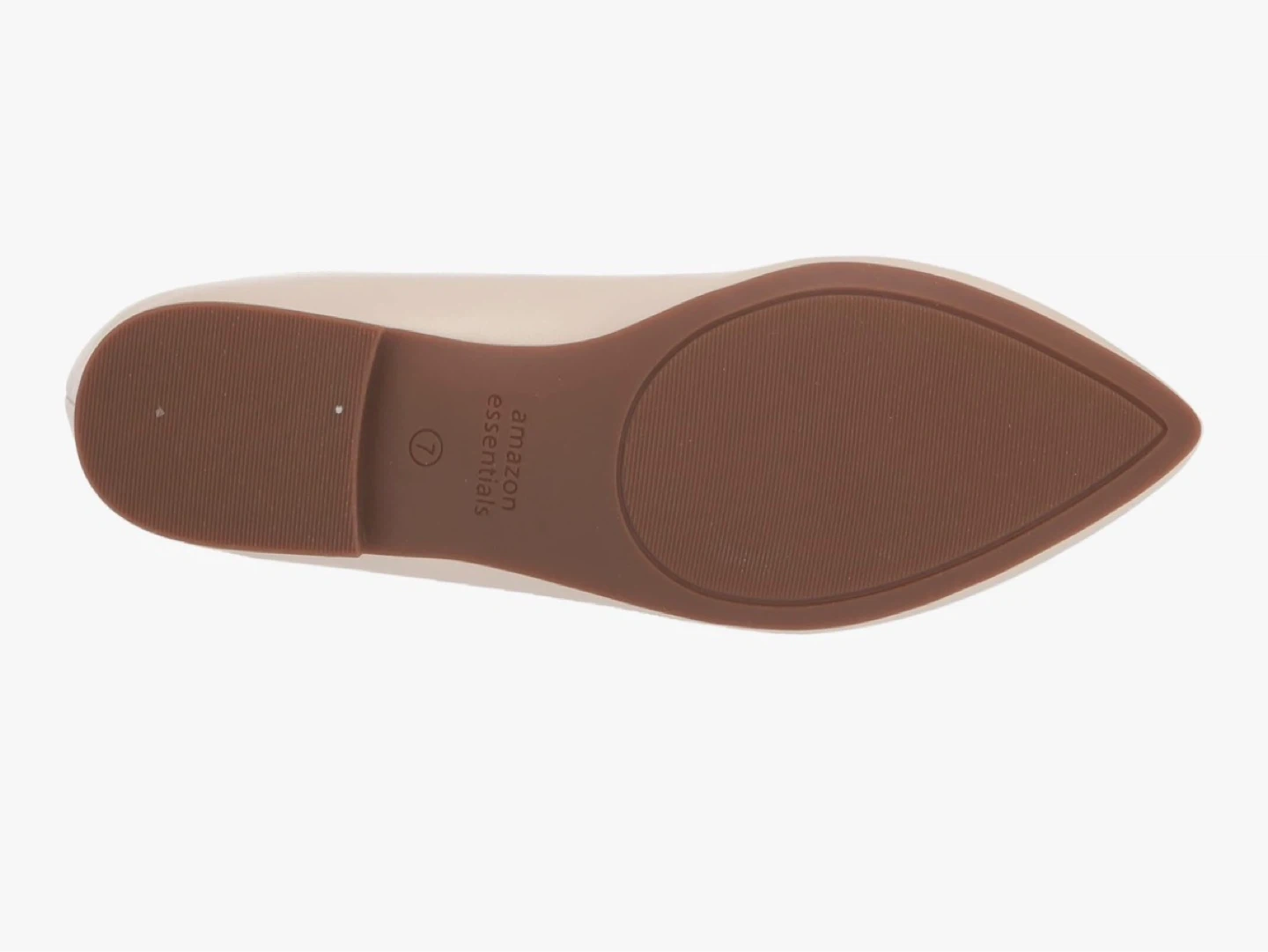 Sz US 7.5 Amazon Essentials Women's Ballet Flats ivory . 10mm heel with a soft non-slip sole. These ballet flats have a stylish pointed toe, no visible stitching, and a modern upper design.
