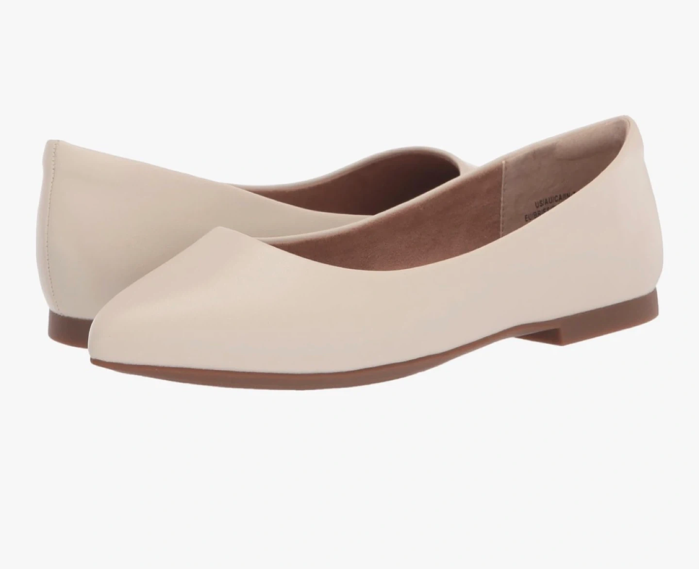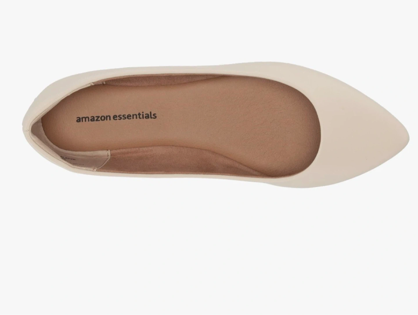 Sz US 7.5 Amazon Essentials Women's Ballet Flats ivory . 10mm heel with a soft non-slip sole. These ballet flats have a stylish pointed toe, no visible stitching, and a modern upper design.