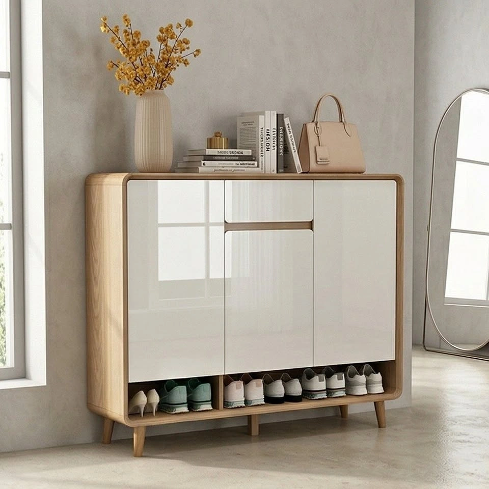 Nordic Wooden Door Shoe Cabinet - Entryway Storage Organizer