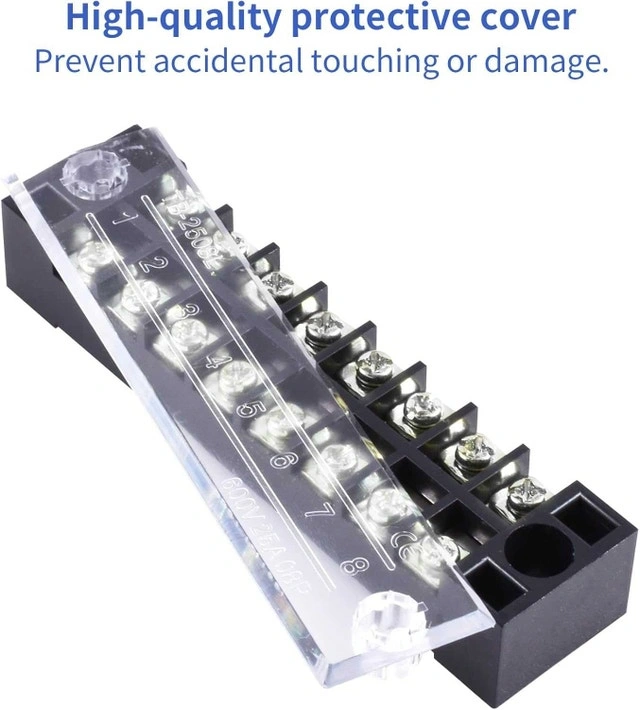 8 position 25A 600V terminal blocks. Protective cover to keep your connections clean. Great for wiring projects including car audio, networking, etc. Owner.