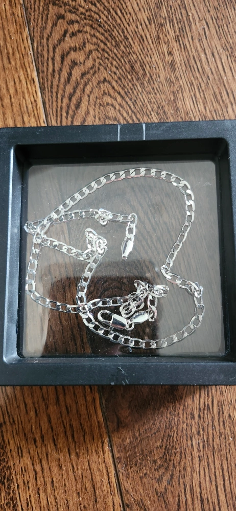 Selling a stylish silver rope chain necklace! It comes in its original box, making it perfect for gifting or keeping it safe. The chain is in great condition and ready to add a touch of elegance to any outfit