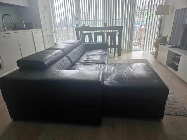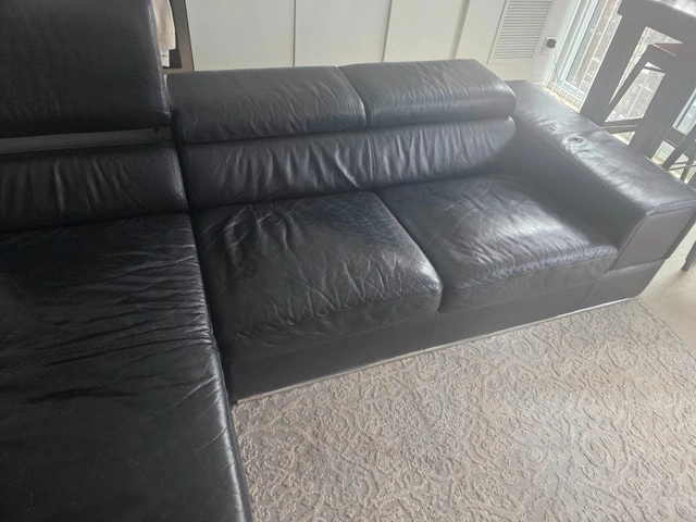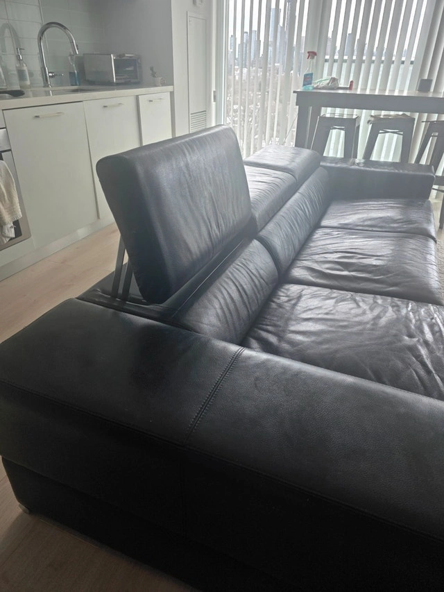 Experience the refined comfort of the Avana Leather Sofa by Natuzzi Italia. Crafted in Italy, this piece features 100% genuine Italian leather, tufted seating, contrast stitching, and rounded metal-framed armrests for a sleek modern touch. Adjustable headrests offer customizable relaxation. Retails over $8000. Asking $2750. Condition: Used - Good. For Sale By: Owner. Cash accepted.