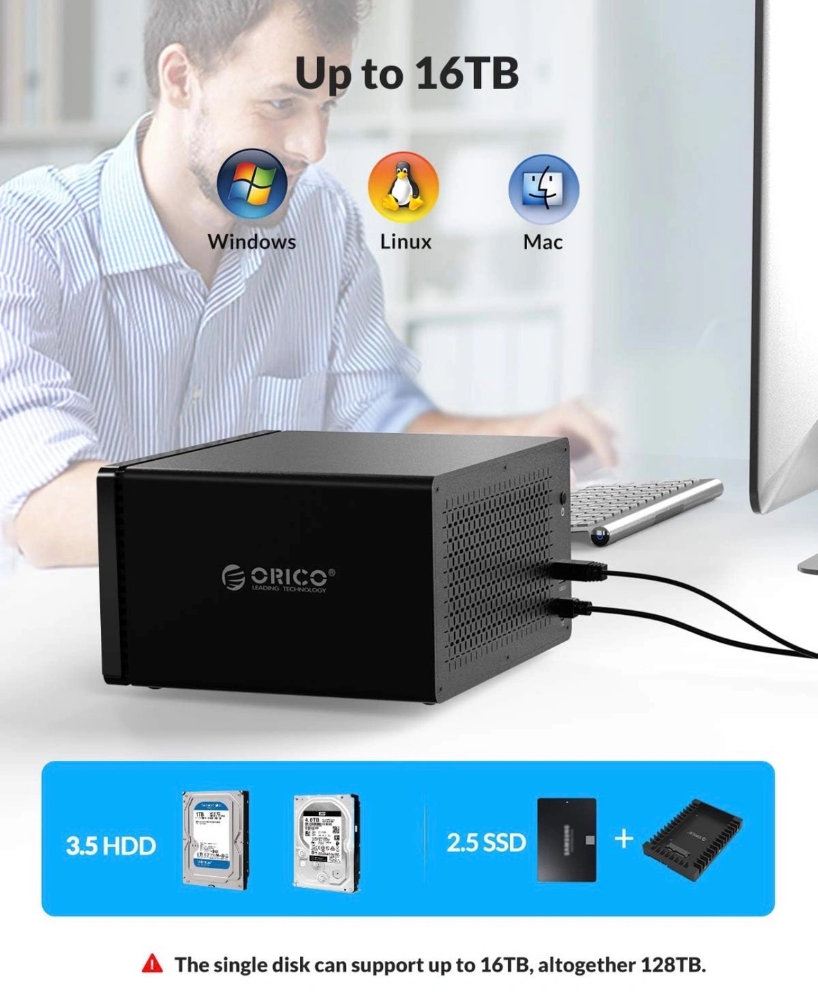 128TB BIG CAPACITY -- The single disk of ORICO 8 bay sata enclosure supports for 16TB hard disk expansion, altogether 128TB capacity can meet the demand of data storage of enterprises.