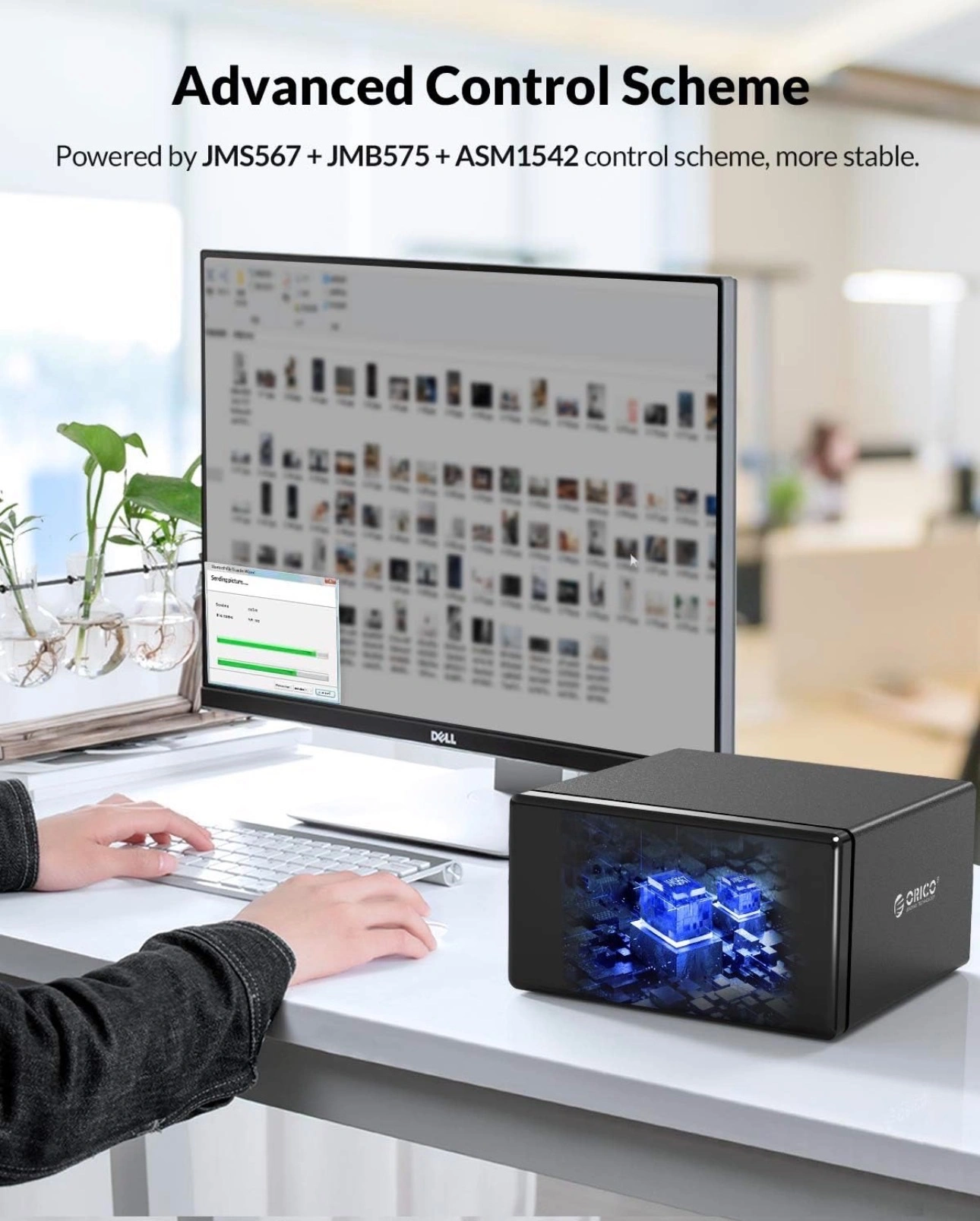 DUAL CHIP CONTROL -- The 8 bay hdd enclosure adopts JMS567 and JMB394 high-end chip, which has both transmission performance for fast 5Gbps and stability and can carry the huge data interaction of the enterprise, reduce the delay.