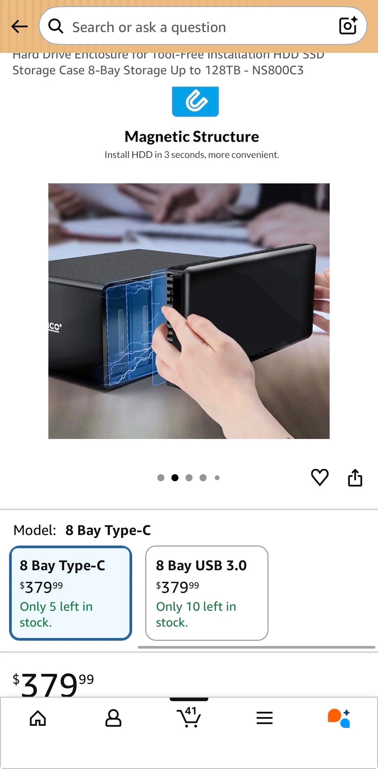 8 Bay Enclosure Type-C HDD/SSD Max 128TB Dual Cooling Fan