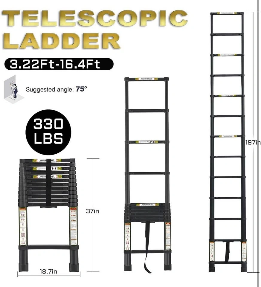 New in Box RIKADE Telescopic Ladder, 16.5FT Aluminum Telescoping Ladder with Non-Slip Feet. Portable Extension Ladder for Household and Outdoor Working, Attic Ladder. 330lb Capacity. Feel free to message if you have any questions!