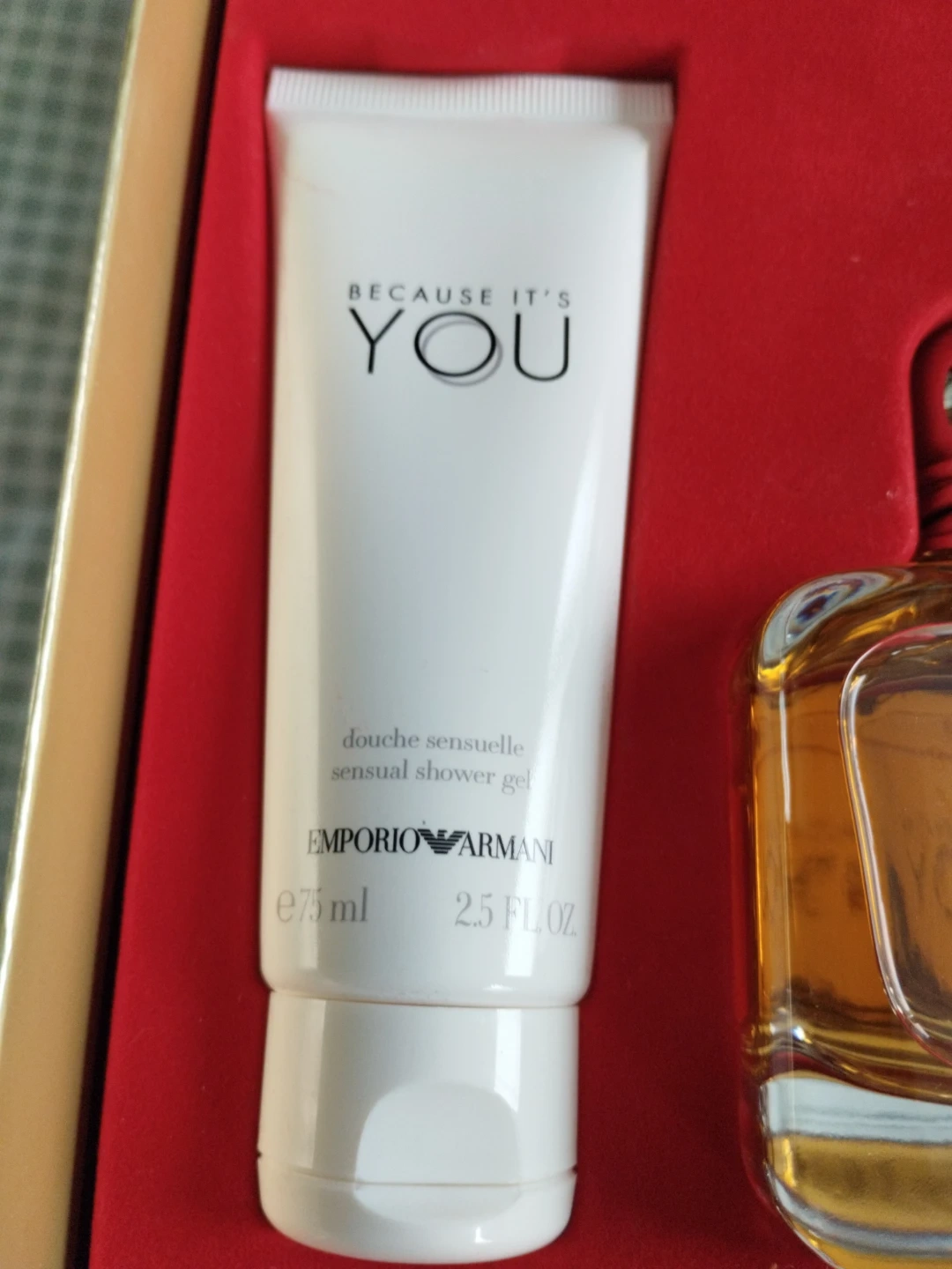 This gift set includes an Emporio Armani "Because It's You" Eau de Parfum 100ml and two 75ml bottles of sensual shower gel and perfumed body lotion. It's a lovely fragrance for everyday wear.