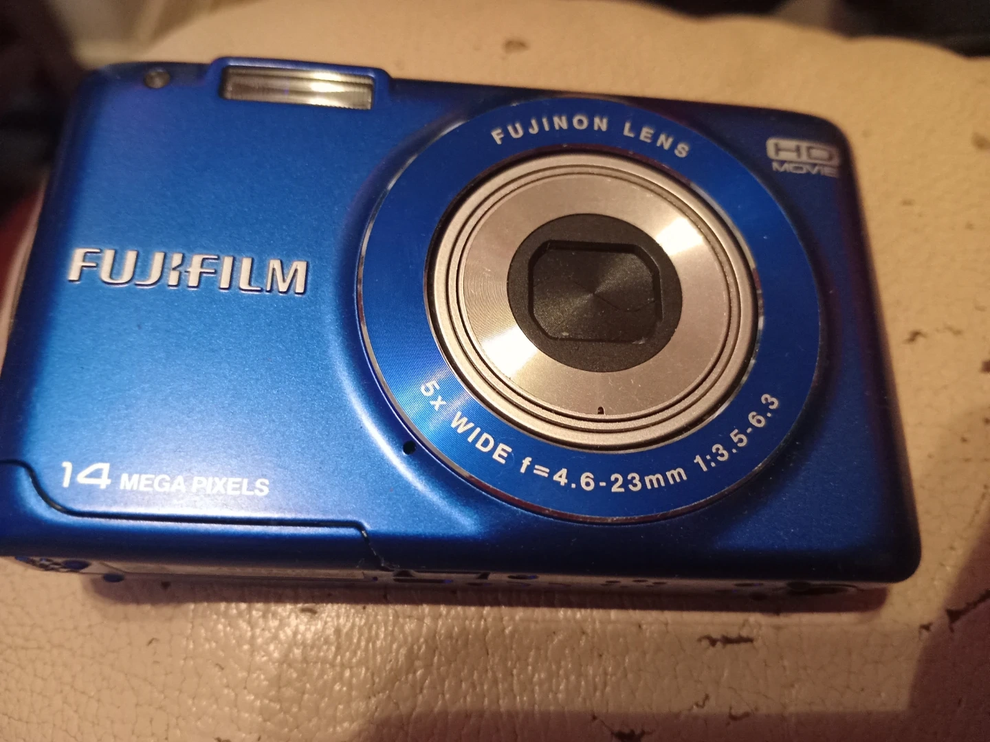 Selling a Fujifilm digital camera in blue! It features a Fujinon lens and captures images at 14 megapixels. It also records HD movies. Perfect for capturing memories on the go. Does work and will turn on but does not come with charger