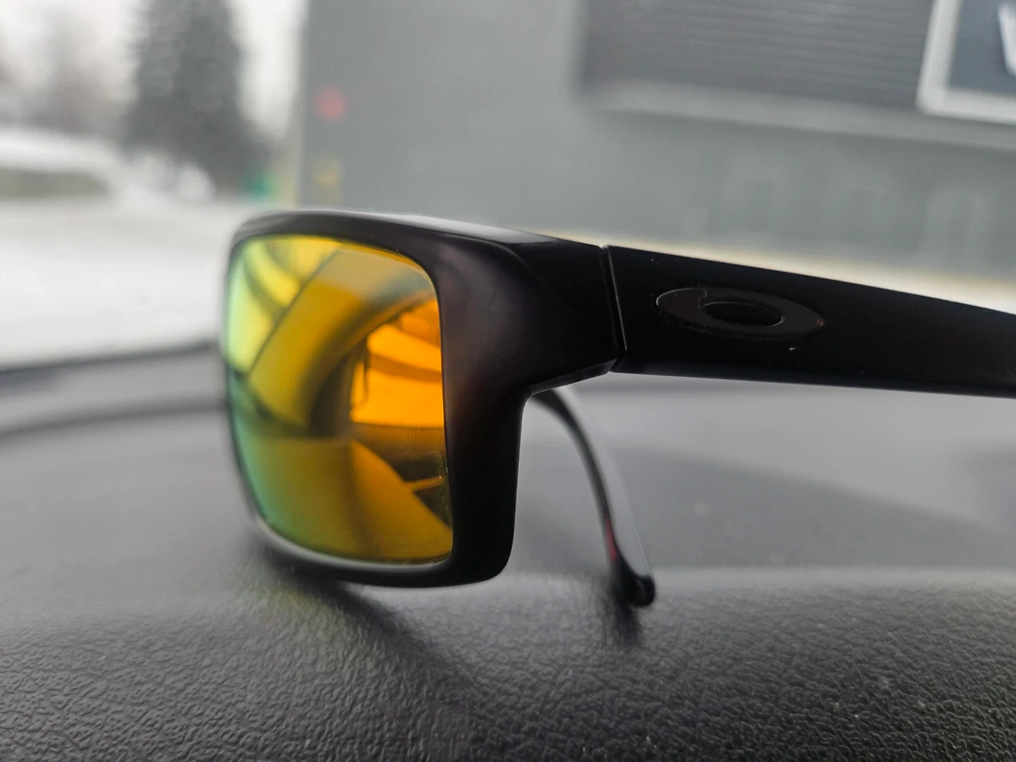 Oakley sunglasses with black frames and polarized reflective lenses. Comes with original box.3 sets of lenses These are not fakes Great for outdoor activities!
