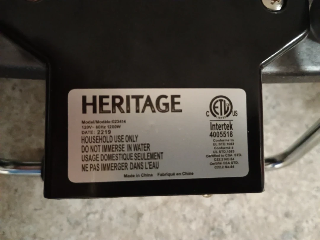 Selling a Heritage electric grill in excellent condition! It's perfect for indoor grilling and easy to clean. Model number is 122414. Get ready to enjoy delicious grilled meals year-round!