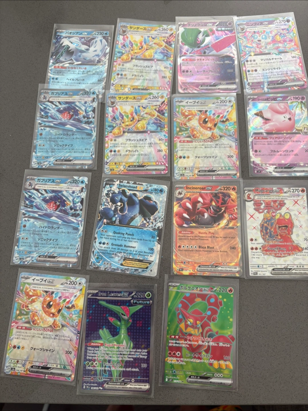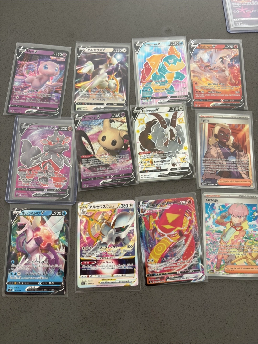 Collection of Pokémon trading cards. Mix of Japanese and English language cards. Various rarities and Pokémon featured. Great for collectors or players. Text me if u want the cards it would be aroung $2 to $5 for a card