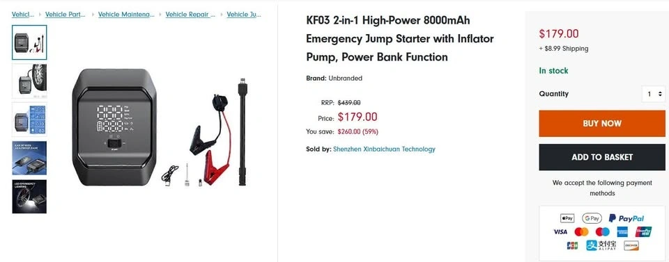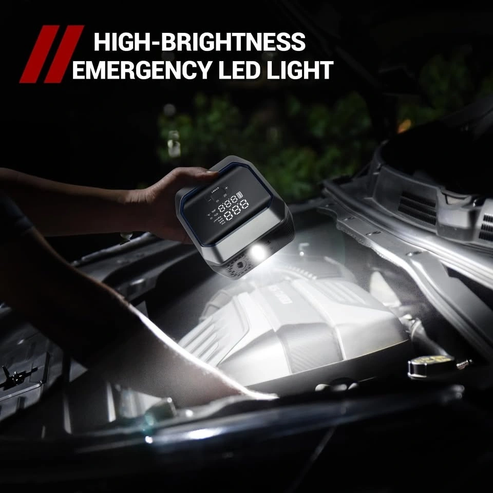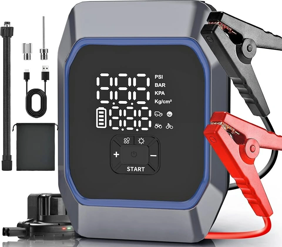 Jump Starter with Air Compressor, Portable Car Battery Jump Starter Battery Pack (8.5 Gas/8.0L Diesel), 12V Jumper Starter Portable Jump Box with LED Display, Emergency Light, Power Bank