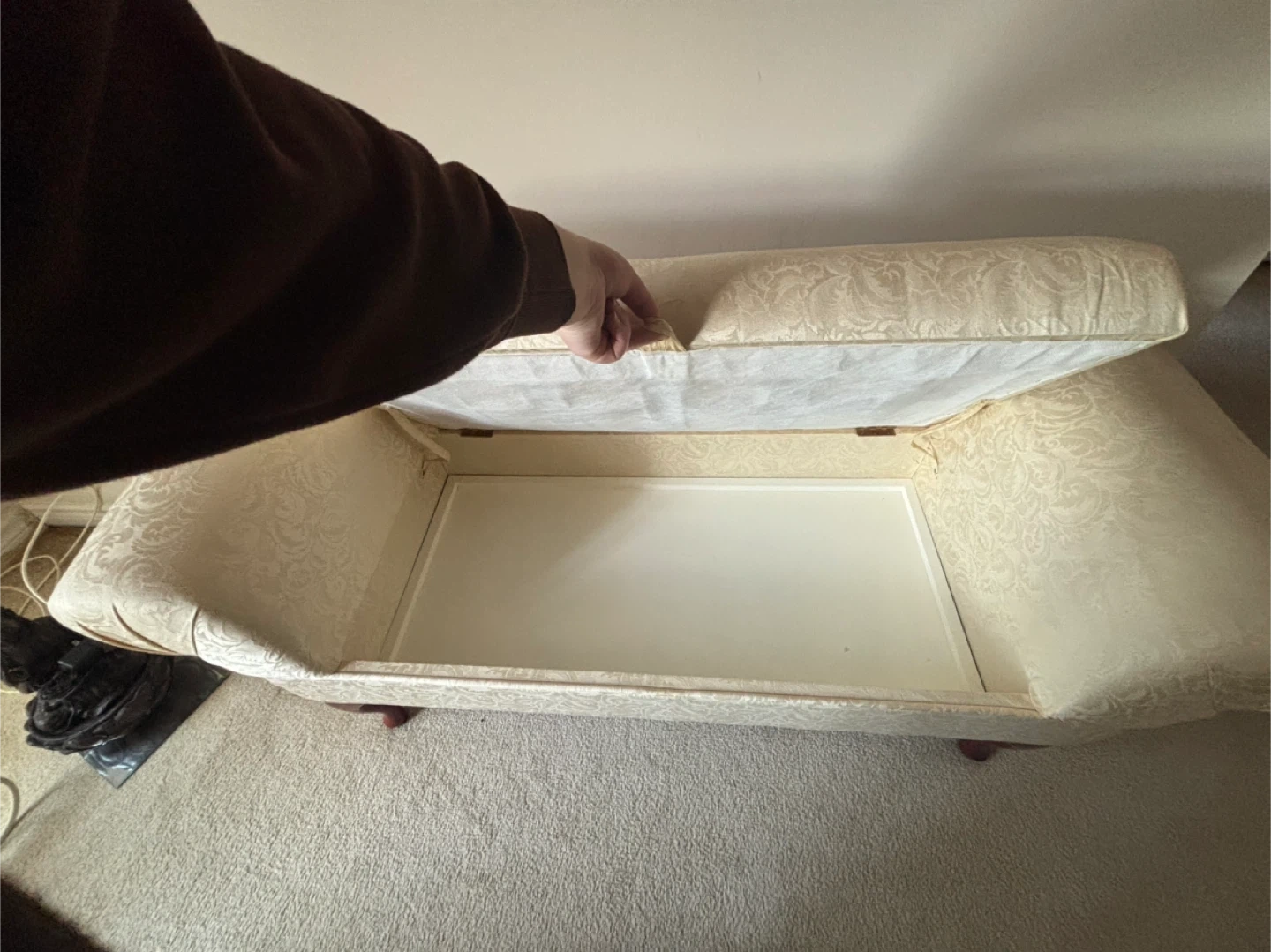 Cream damask storage bench