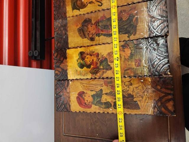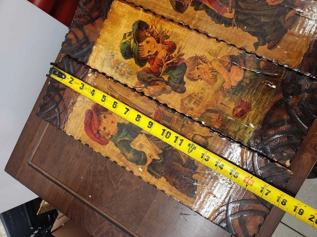 Add a touch of vintage charm to your space with these delightful wall art panels! Each panel features charming depictions of children in a classic style. Perfect for adding character to any room. They measure about 35 inches in height and 18 inches in width. These panels are used and show signs of wear, which only adds to their unique, antique appeal. If the ad is still up, then yes, it's still available! Cash accepted.