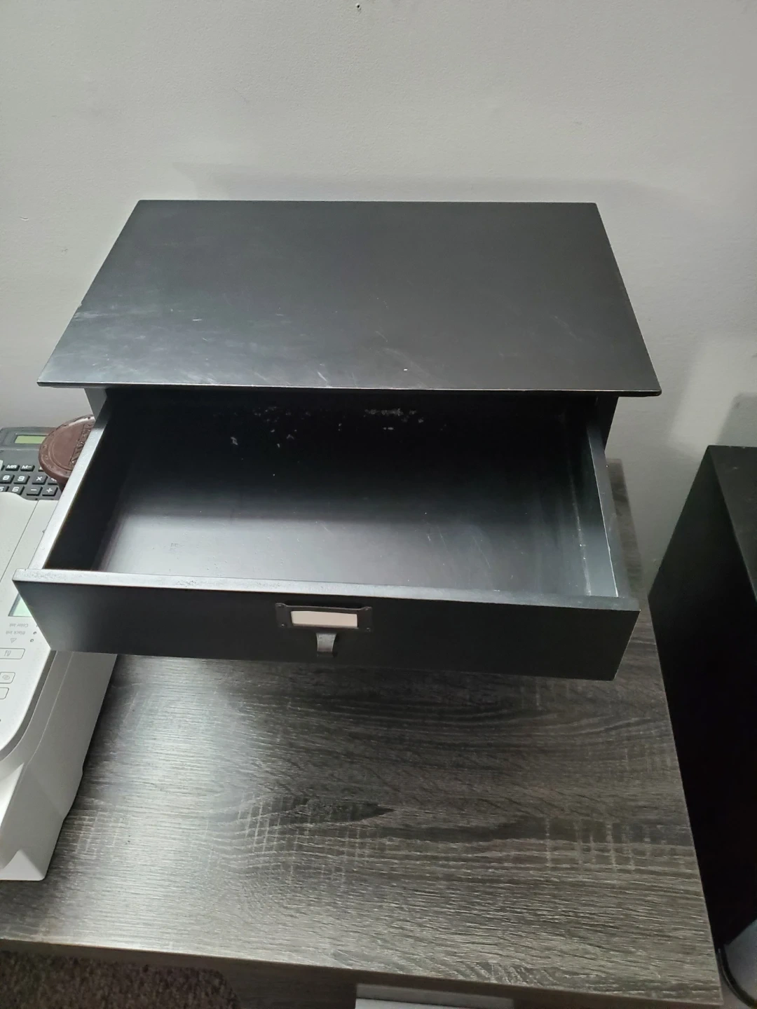 This black organizer features three drawers with label holders. It's perfect for storing small items like craft supplies or desk essentials. The drawers glide smoothly, offering convenient access to your belongings.